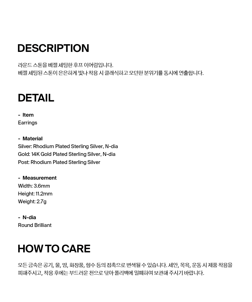 넘버링 #3302 베젤 세트 훕 이어링 실버