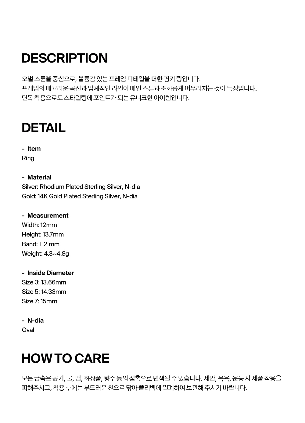 넘버링 #3601 오벌 솔리테어 핑키 링 골드