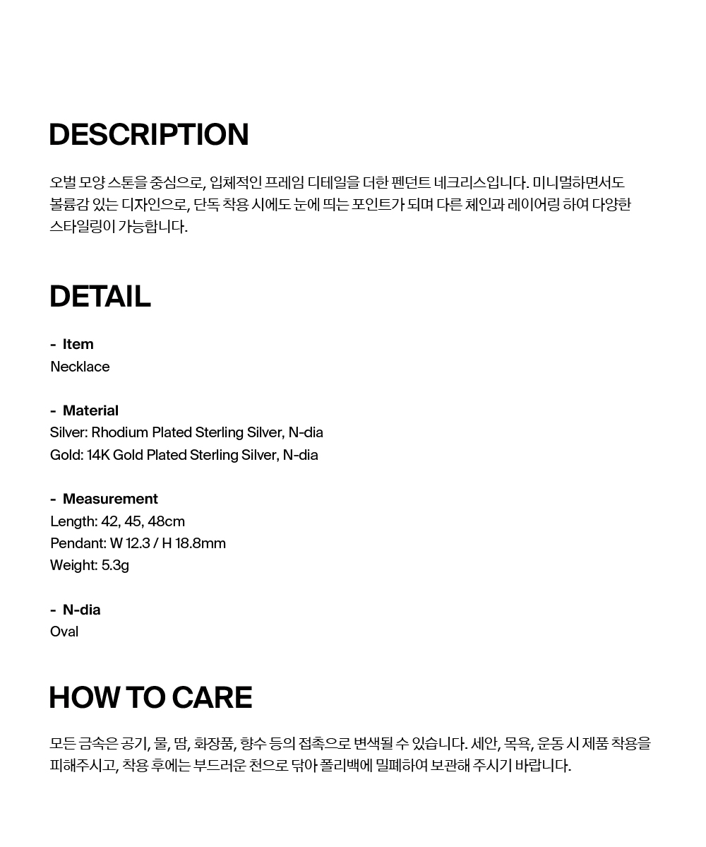 넘버링 #3801 오벌 솔리테어 펜던트 네크리스 골드