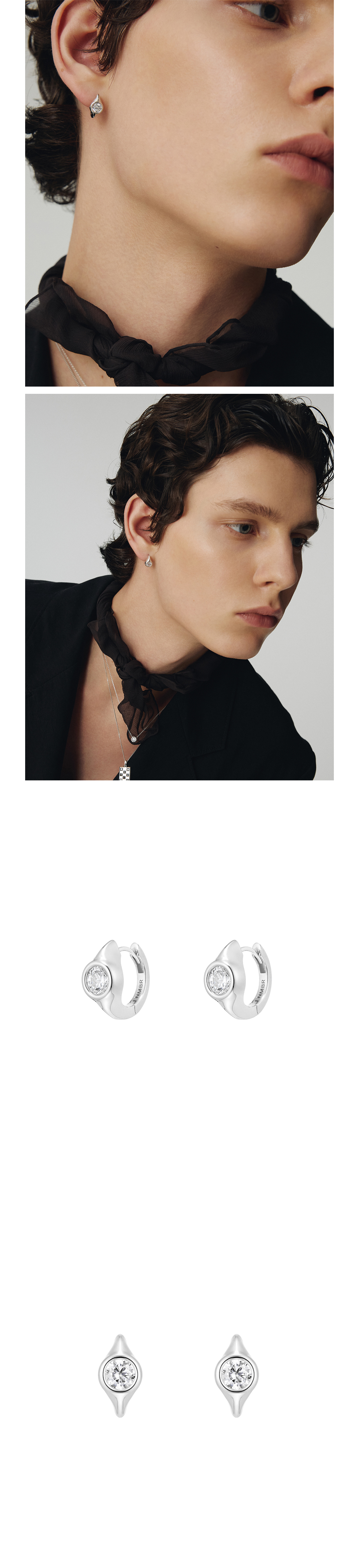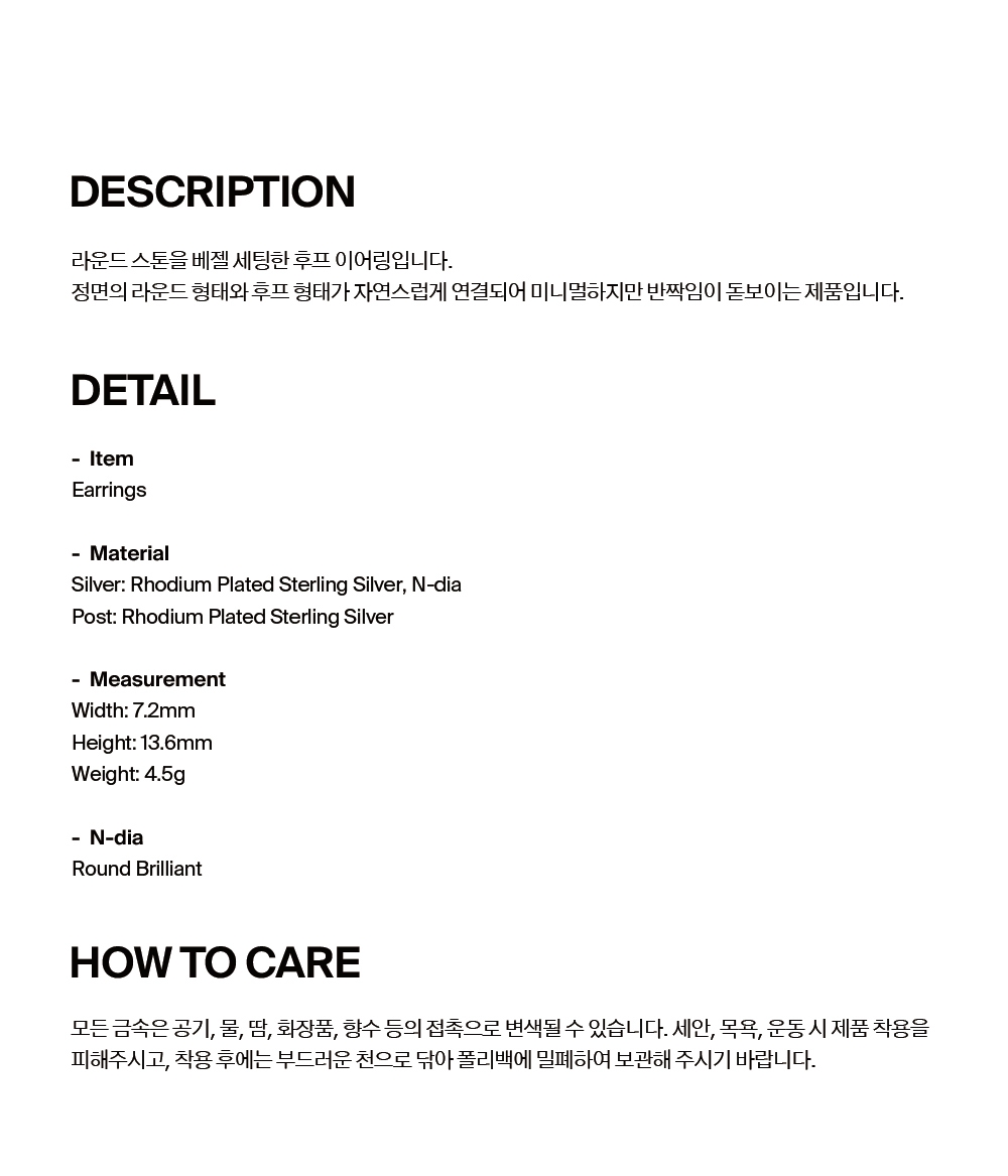 넘버링 #3203 베젤 세트 솔리테어 후프 이어링 실버