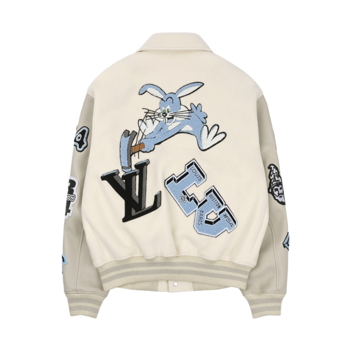 Louis Vuitton Multi Patch Mixed Leather Varsity Blouson Milky White