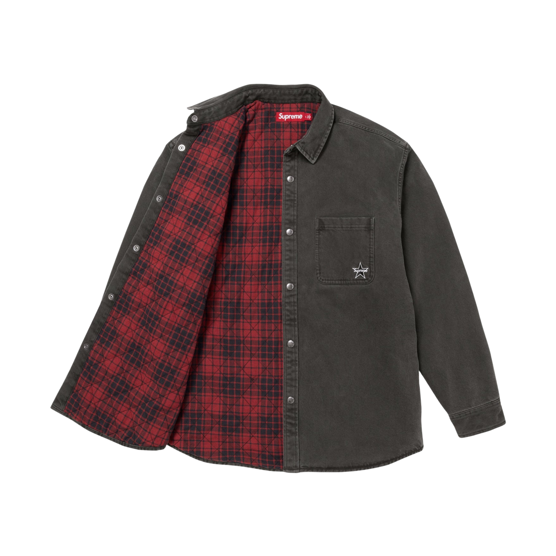 Supreme Quilted Lined Denim Snap Shirt Black - 25FW