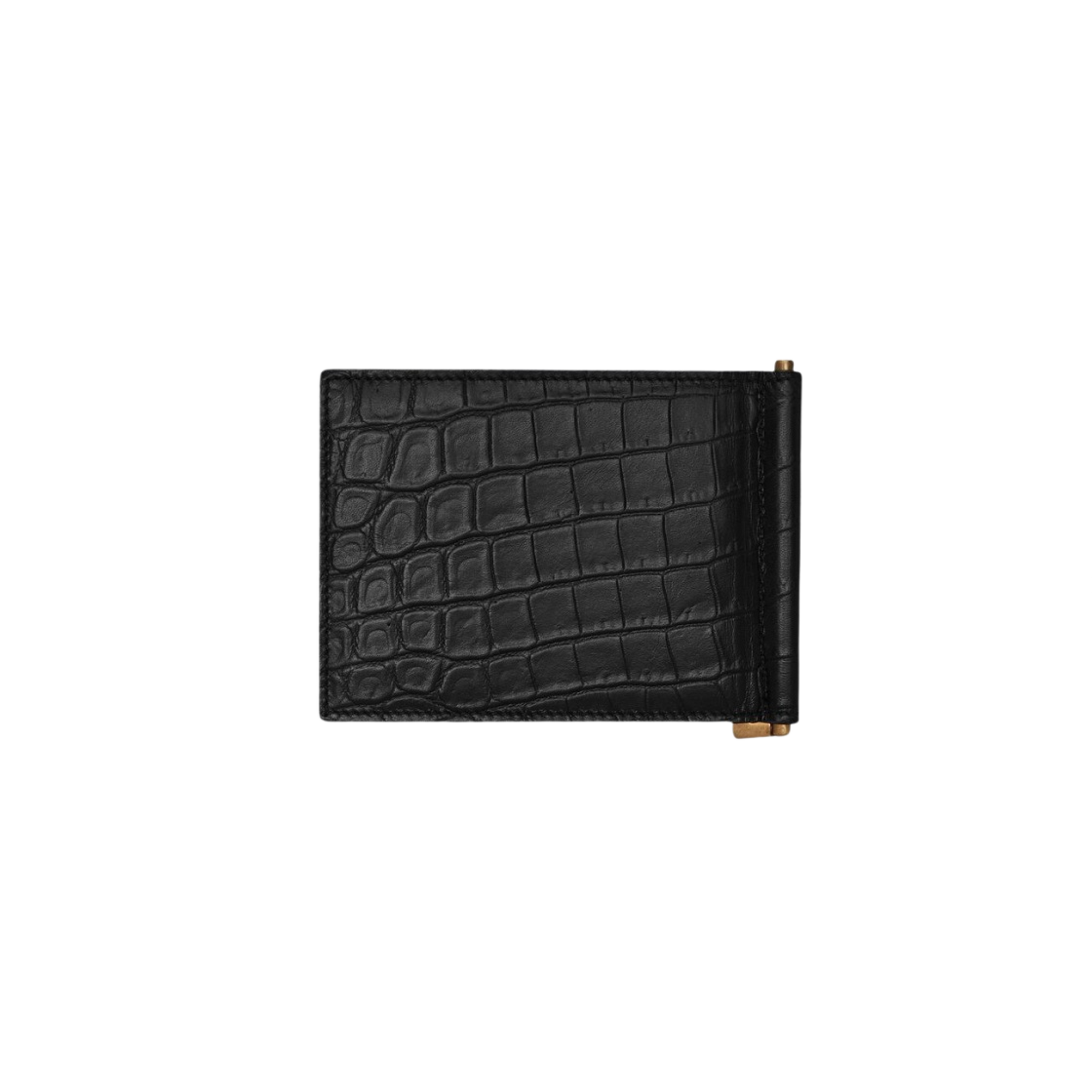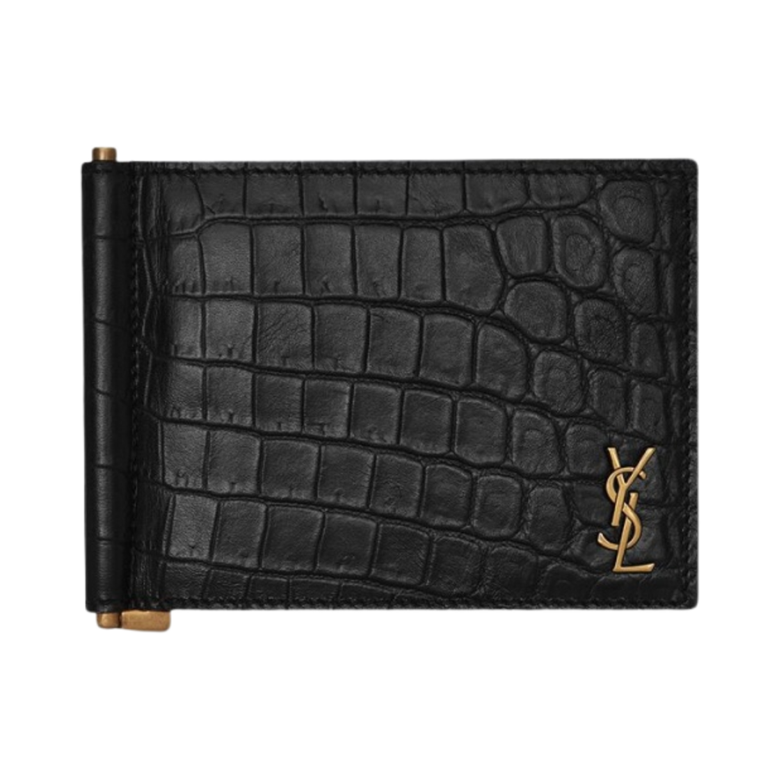 Saint Laurent Tiny Cassandre Bill Clip Wallet in Crocodile Embossed Matte Leather Black