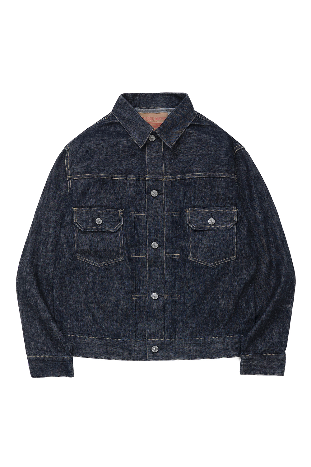 YMCL KY Denim Jacket 2nd Model - Blue 13.5온스 셀비지 데님을 사용한 투박하고 클래식한 2ND MODEL 데님 자켓입니다. 구식 셔틀 직기로 정성스럽게 짠 셀비지 데님은 탄탄한 두께감과 독특한 얼룩감, 깊이감 있는 표면으로 시간이 지날수록 페이딩 되며 경년 변화를 느낄 수 있습니다. 셀비지 데님 특유의 빨간색 스티치와 신치백, 월계수 버튼, 구리 리벳 등의 특징이 있습니다. 가장 인기 있는 데님 자켓인 1953년 모델, 통칭 2nd(세컨드) 타입을 복각한 아이템입니다. 액션 플리츠와 두 개의 포켓, 5개의 포켓 등의 특징이 있습니다. 1950년대를 대표하는 명작으로 지금도 많은 컬렉터를 매료하고 있습니다. * Cotton 100% * YMCL KY 는 합리적인 가격으로 제품을 제공하기 위하여 별도의 포장이 존재하지 않습니다. * 빛에 의한 제품의 색감 차이가 존재 할 수 있습니다. * Made in China