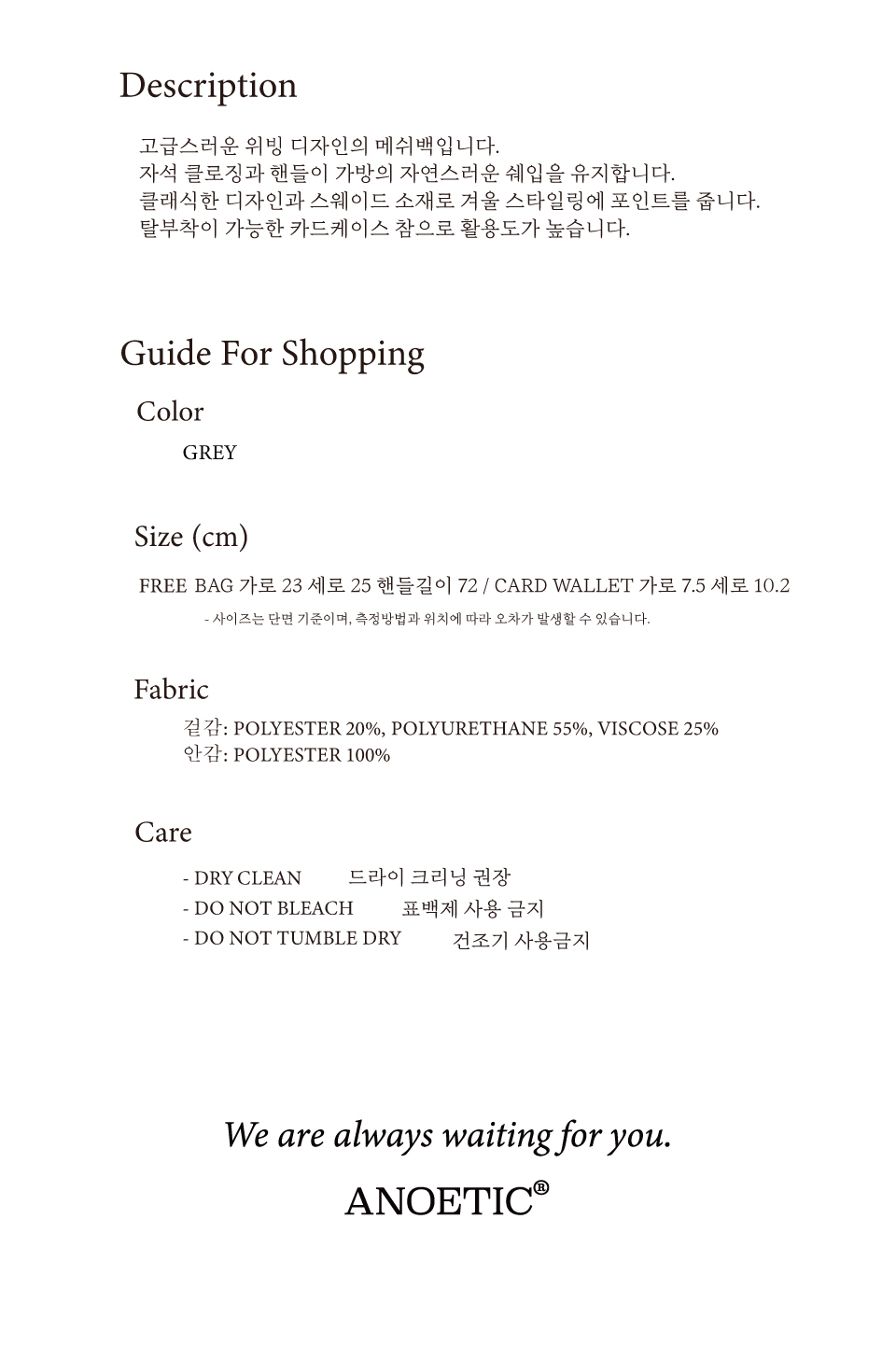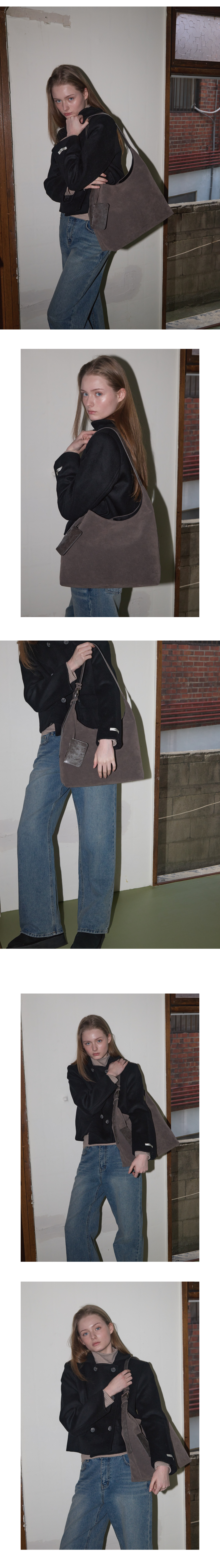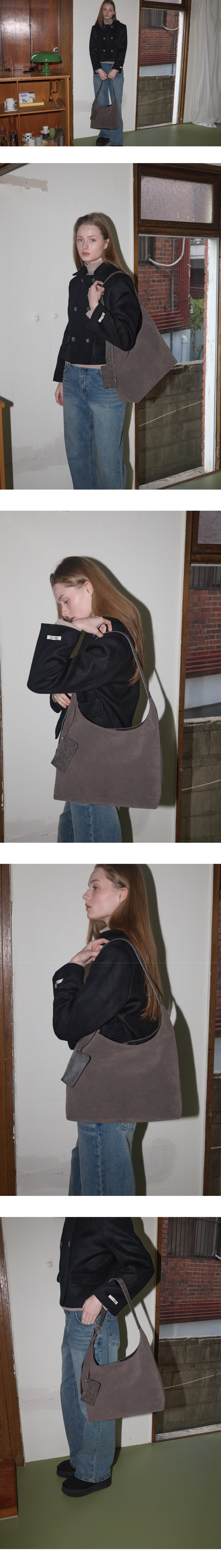 아노에틱 스웨이드 호보 백&카드 지갑 세트 그레이