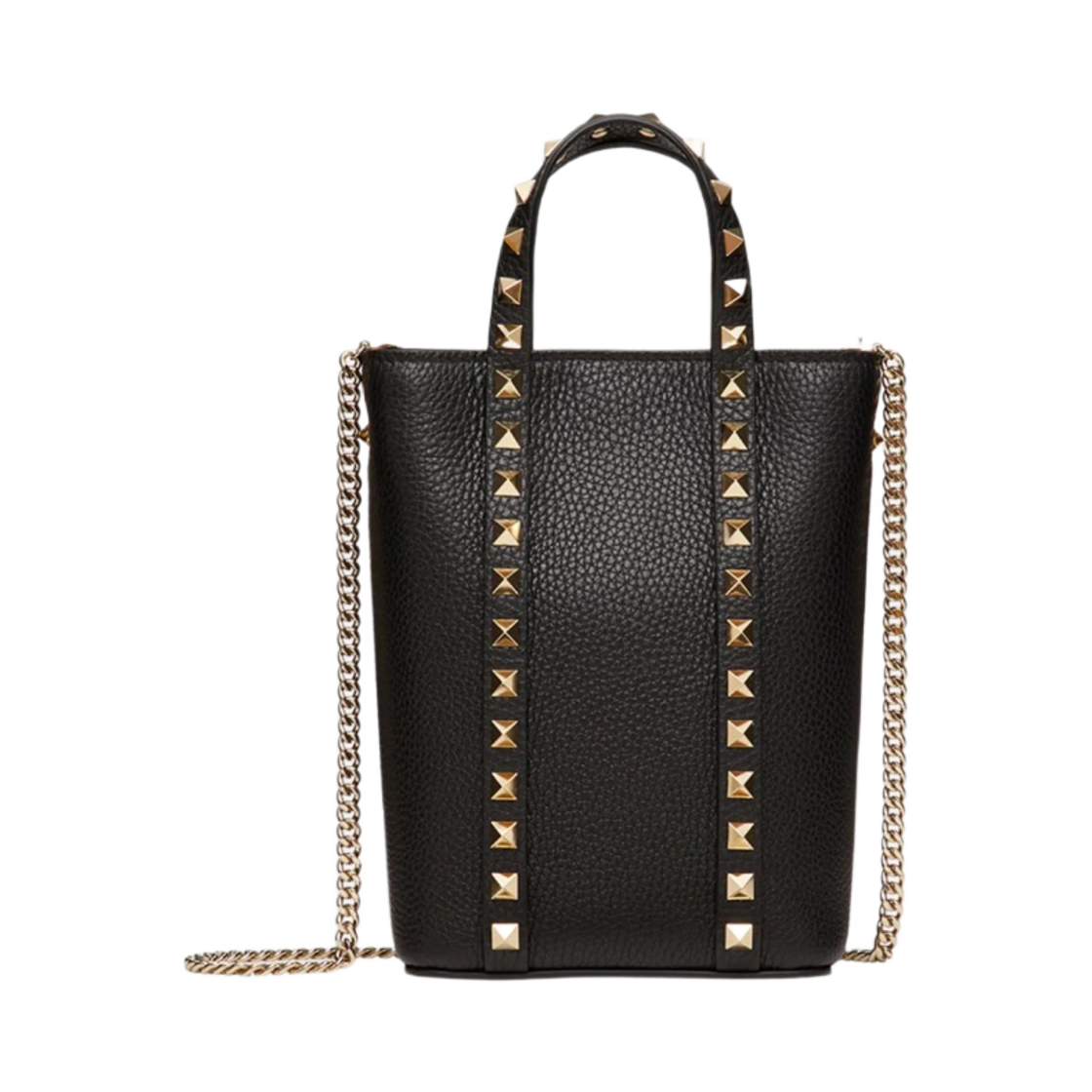 Valentino Stampa Alce Calfskin Leather Rockstud Chain Pouch Black
