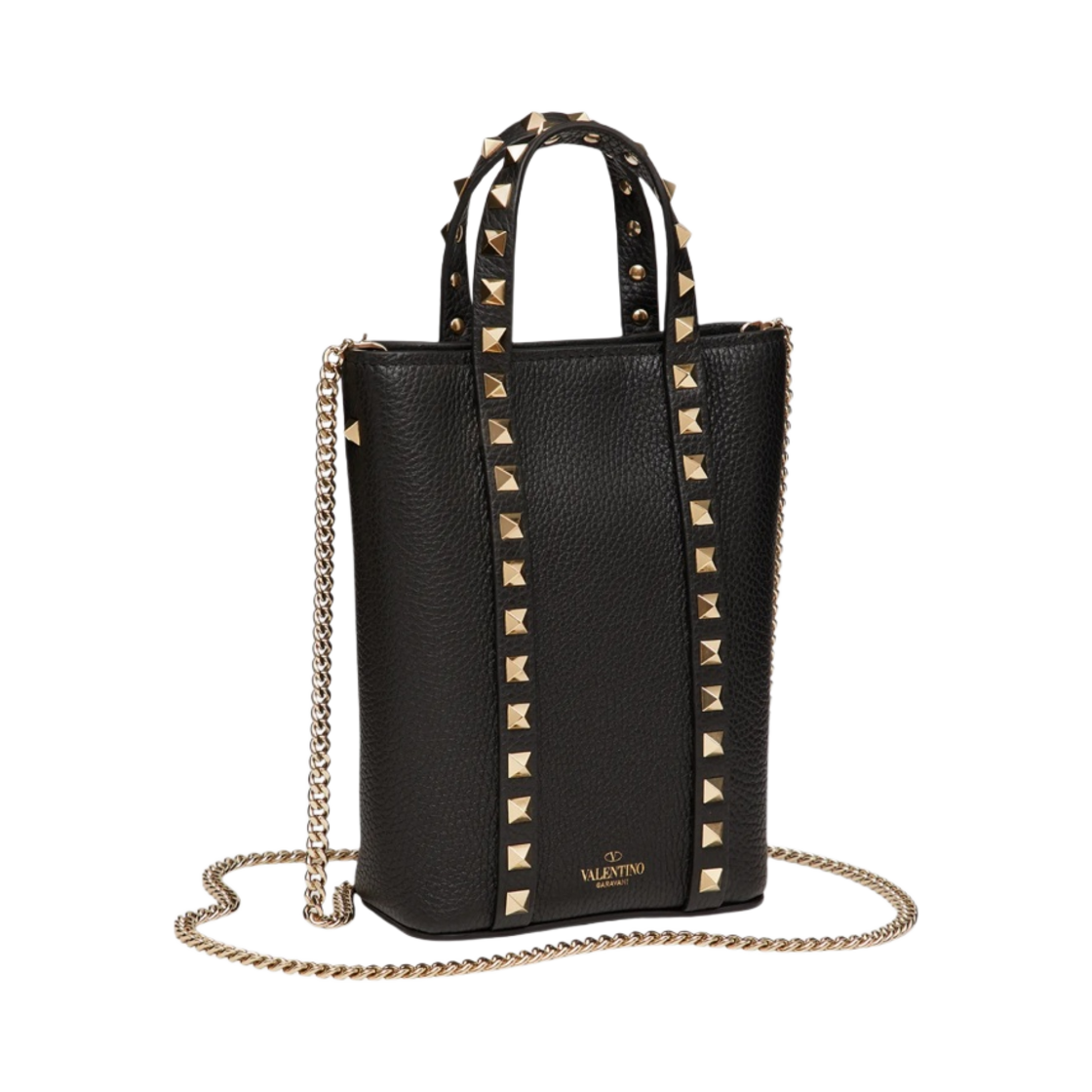 발렌티노 스탐파 알체 송아지 가죽 락스터드 체인 파우치 블랙