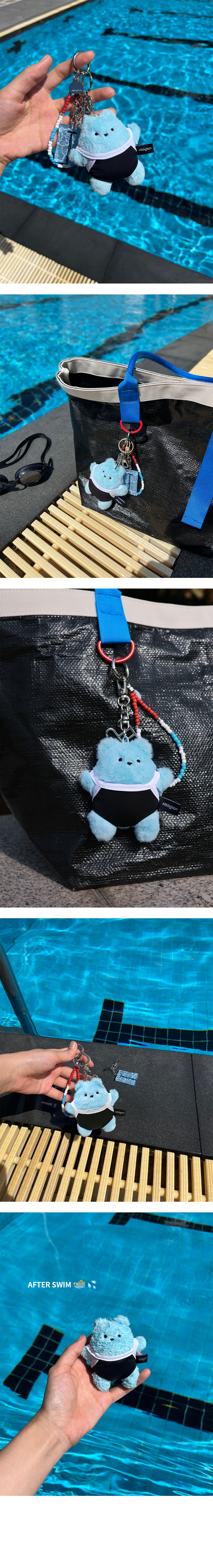 SWIMMY BEAR KEYRING은 수영의 매력 을 가득 담은 귀여운 수영 곰 키링입니다. 수영을 너무 좋아한 나머지, 결국 물빛으로 물들어버린 스위미 베어! 오늘도 수영장으로 향하는 수친자를 닮은 키링입니다. 수영장을 연상시키는 청량한 블루 컬러와 귀여운 수영 복차림으로, 수영의 즐거움을 그대로 담아냈습니다. 수영 가방이나 차 키에 포인트로 더해보세요. 언제 어디서나 수영의 감성을 함께하며, 일상에 작은 활력을 더해줄 키링입니다.
