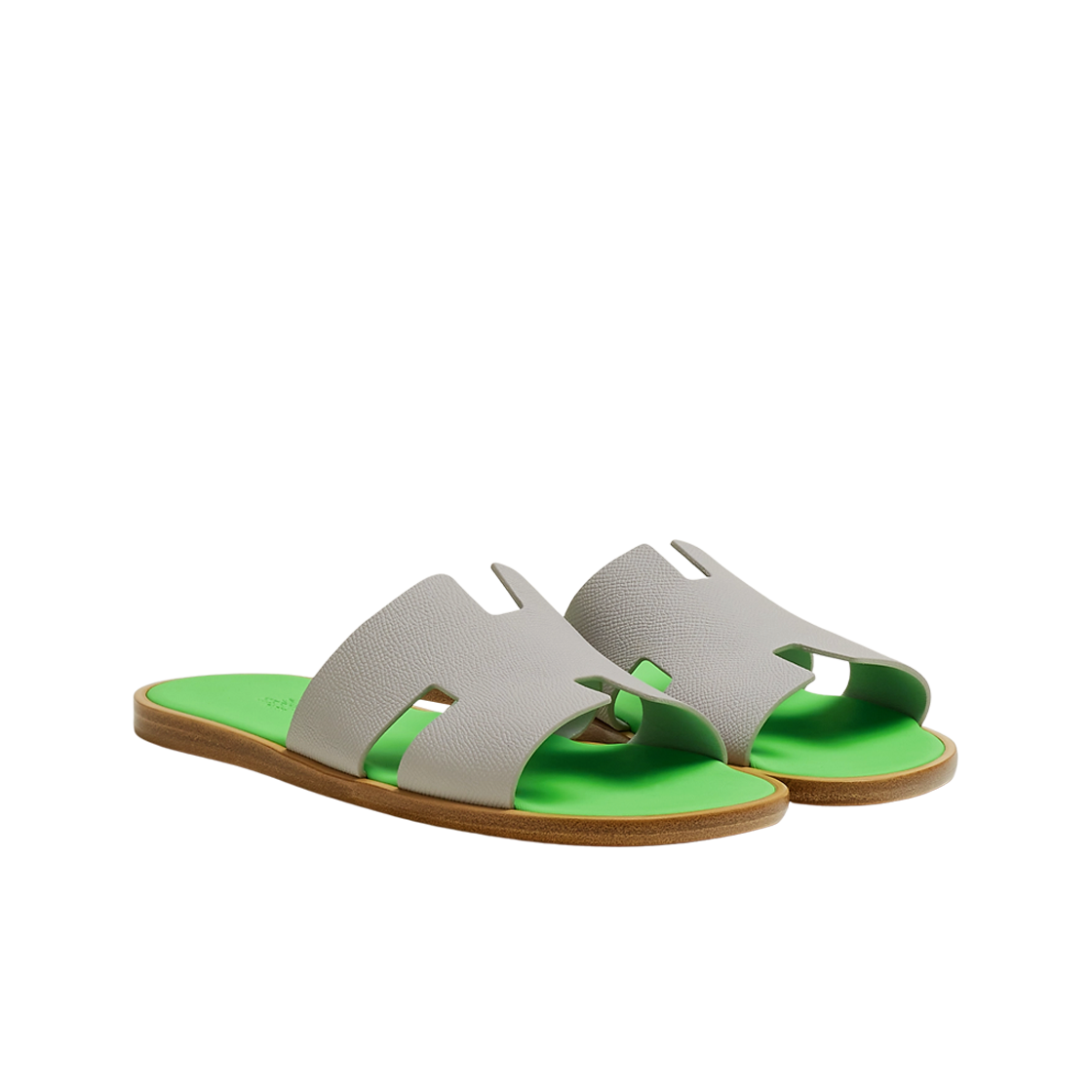 Hermes Izmir Sandal Epsom & Gris Quartz Vert Fluo