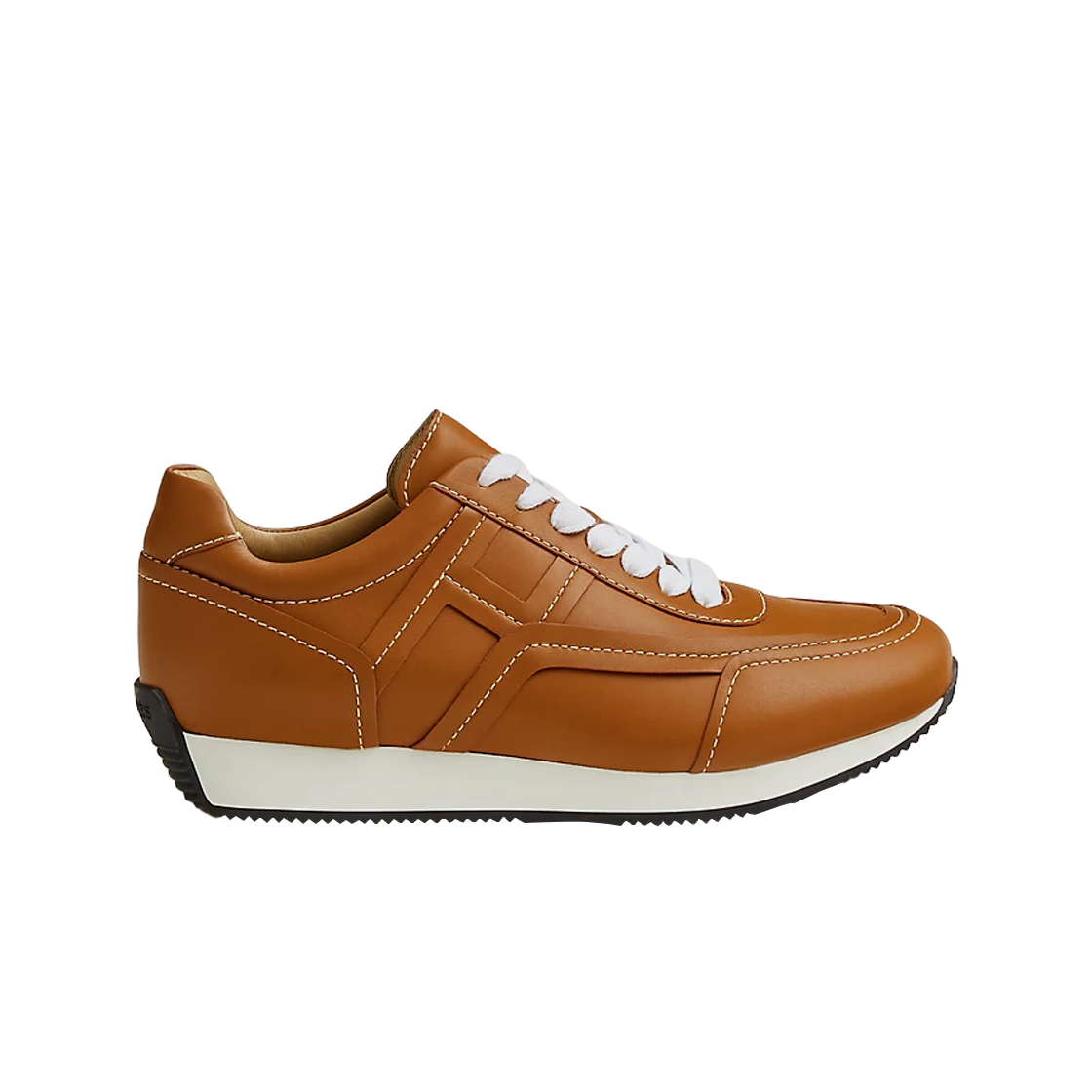 Hermes Chris Sneakers Topstitching Calfskin & Beige Dore