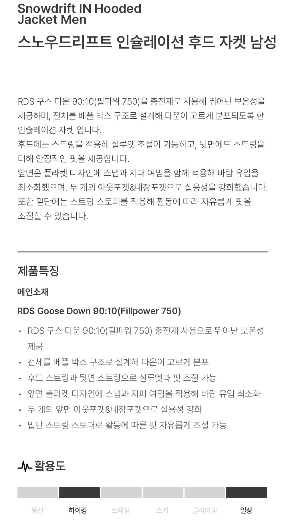 마무트 스노우드리프트 인슐레이션 후드 자켓 남성 블랙