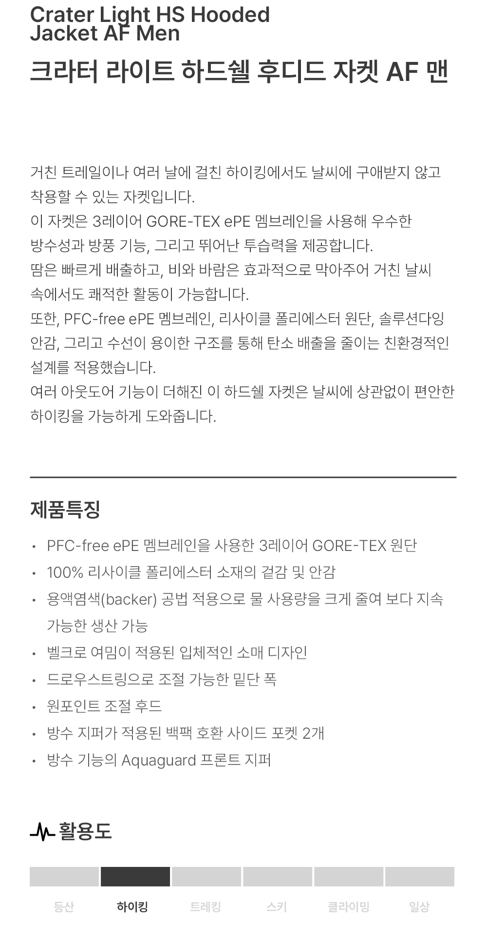 마무트 크라터 라이트 하드쉘 후디드 자켓 AF 맨 블랙