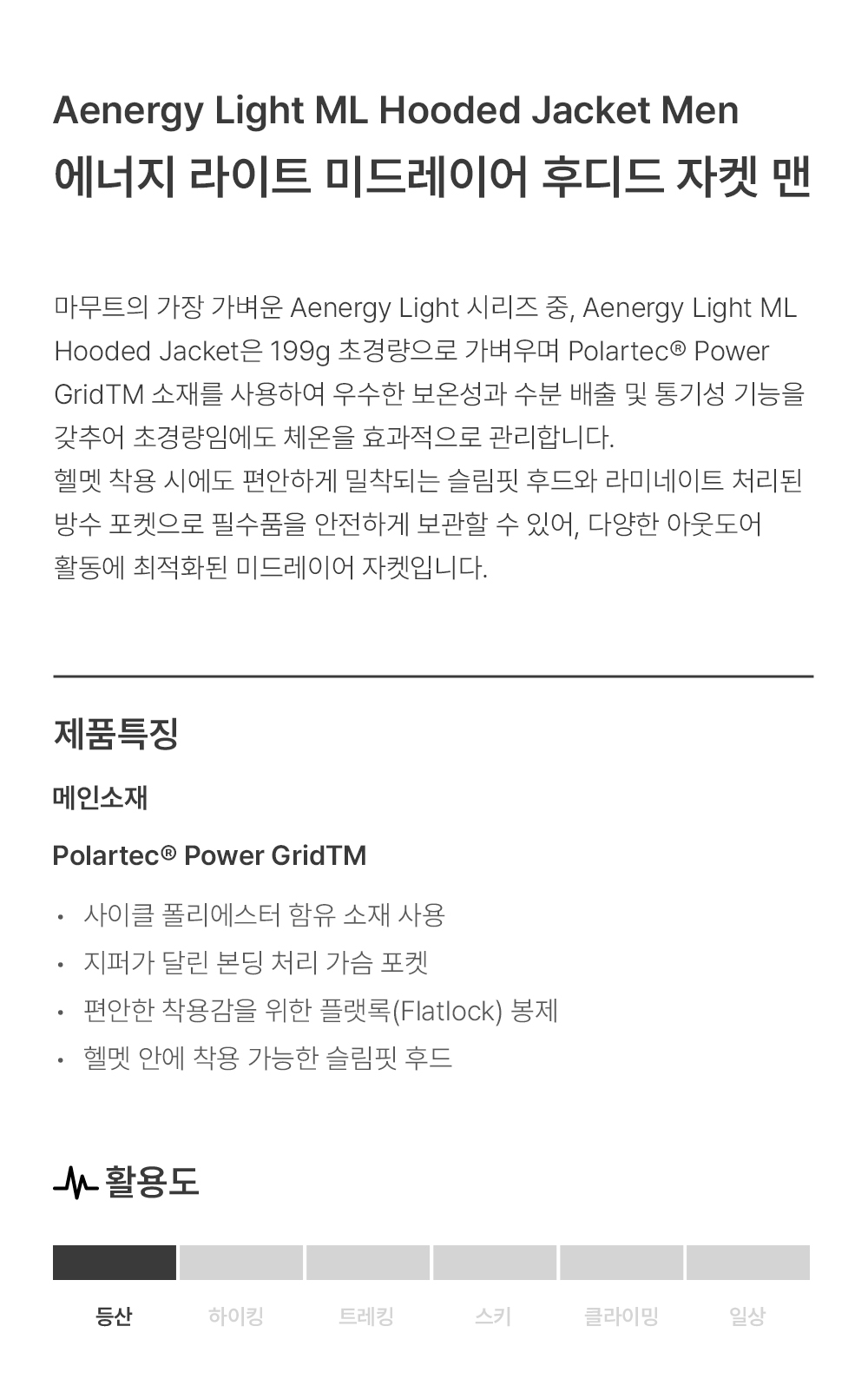 마무트 에너지 라이트 미드레이어 후디드 자켓 맨 블랙