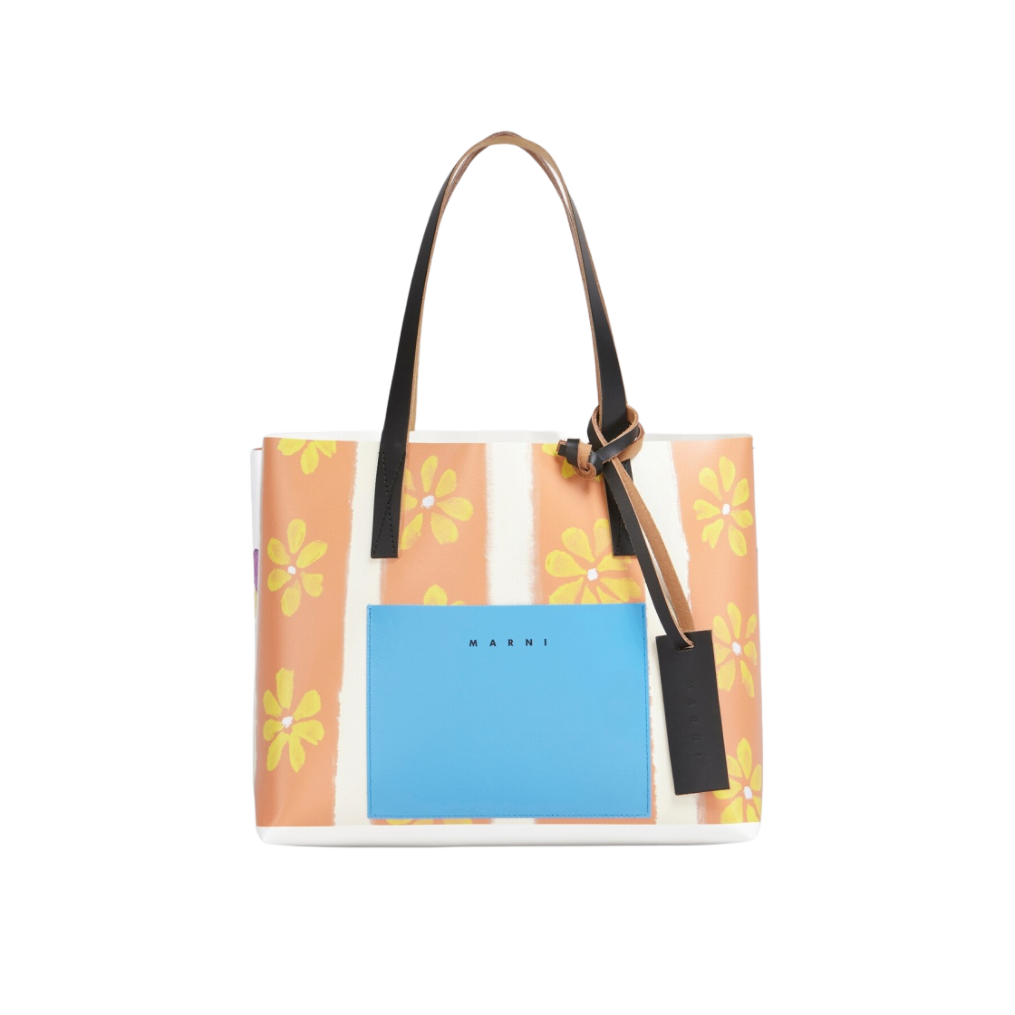 Marni PVC Orange Daisy Lane Print Shopping Bag Carrot Azure