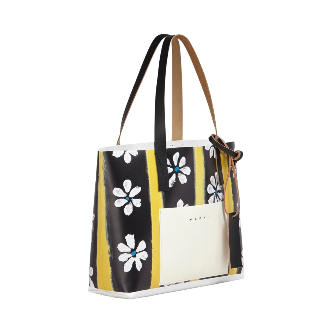 Marni PVC Orange Daisy Lane Print Shopping Bag Black Silk White