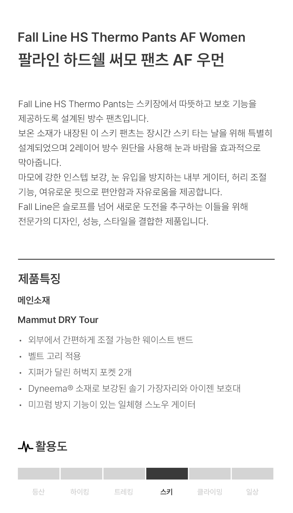 마무트 팔라인 하드쉘 써모 팬츠 AF 우먼 네이비