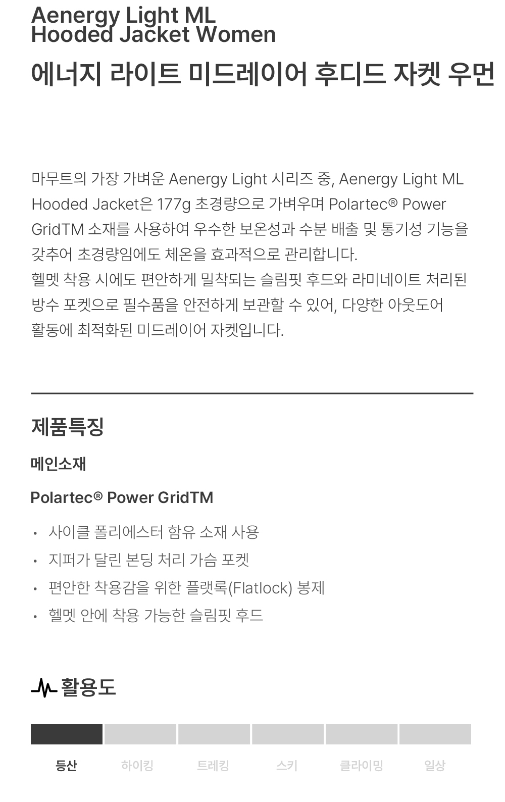 마무트 에너지 라이트 미드레이어 후디드 자켓 우먼 블랙