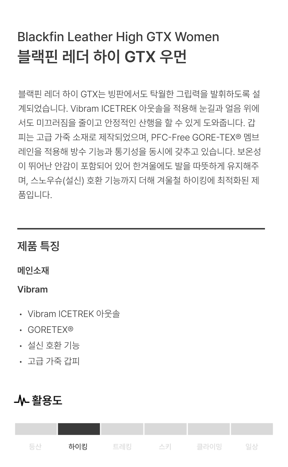 마무트 블랙핀 레더 하이 GTX 우먼 블랙