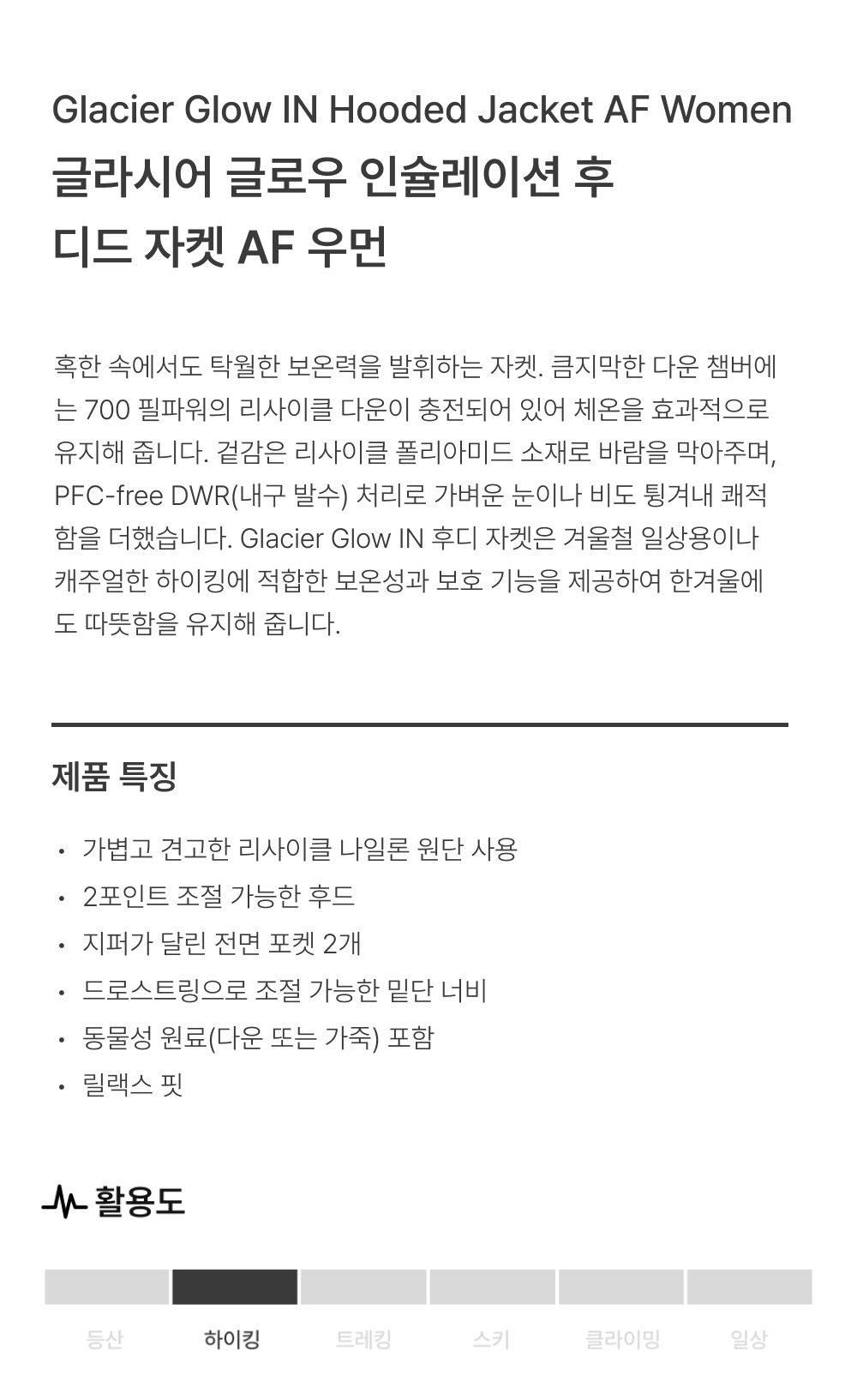 마무트 글라시어 글로우 인슐레이션 후디드 자켓 AF 우먼 실버