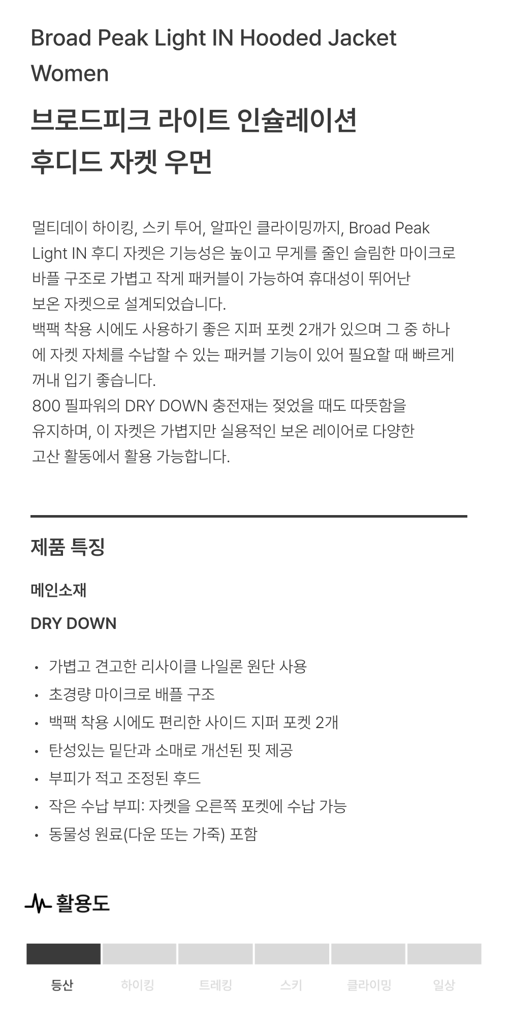 마무트 브로드피크 라이트 인슐레이션 후디드 자켓 우먼 그레이