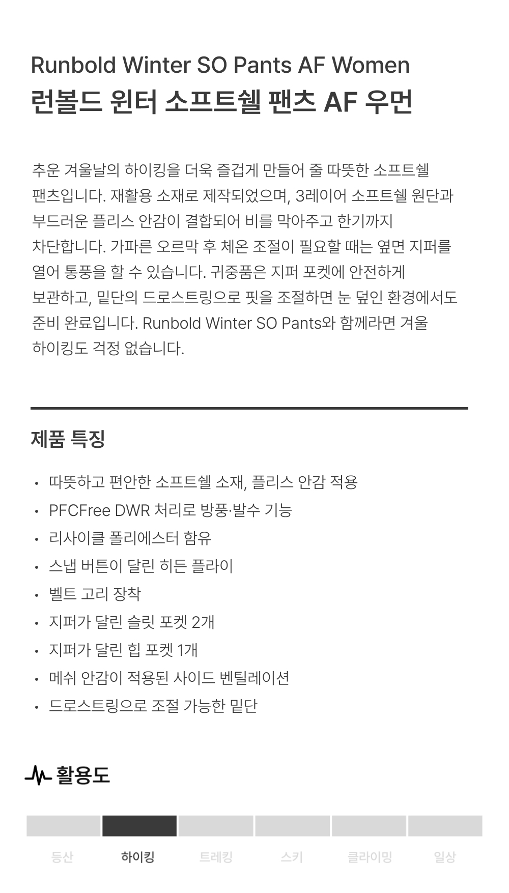 마무트 런볼드 윈터 소프트쉘 팬츠 AF 우먼 블랙
