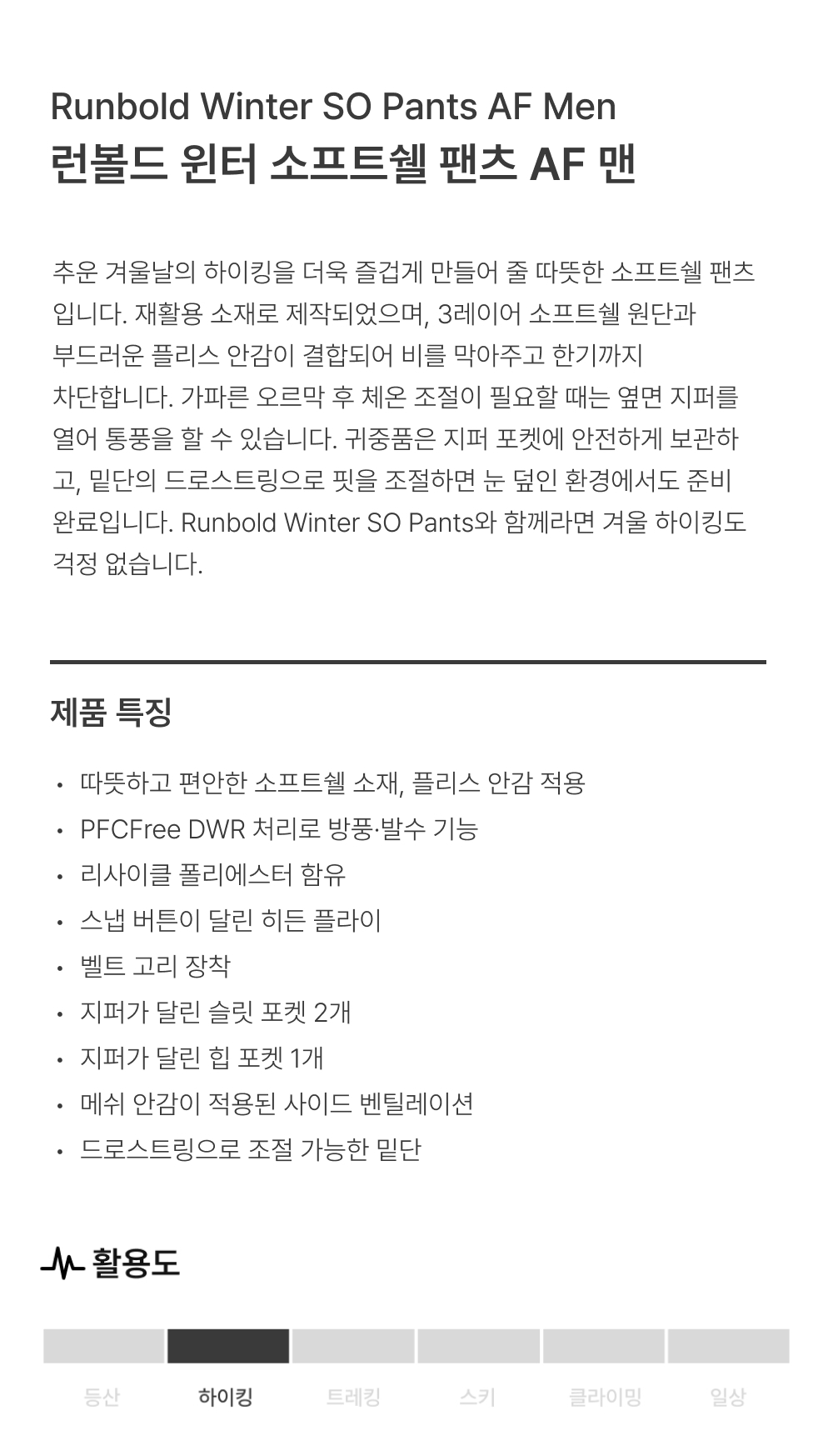 마무트 런볼드 윈터 소프트쉘 팬츠 AF 맨 카키
