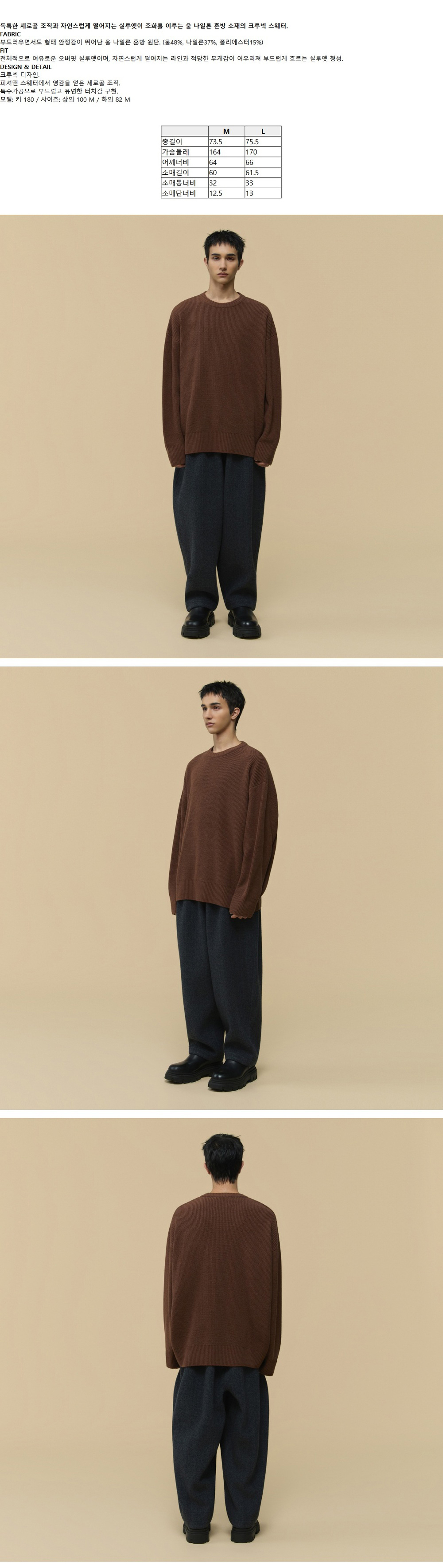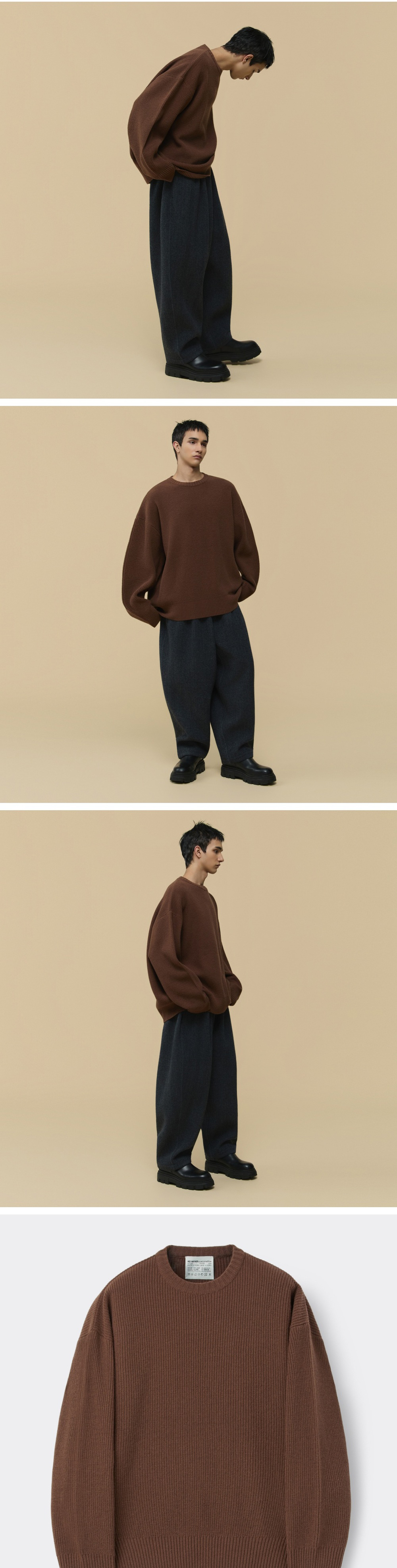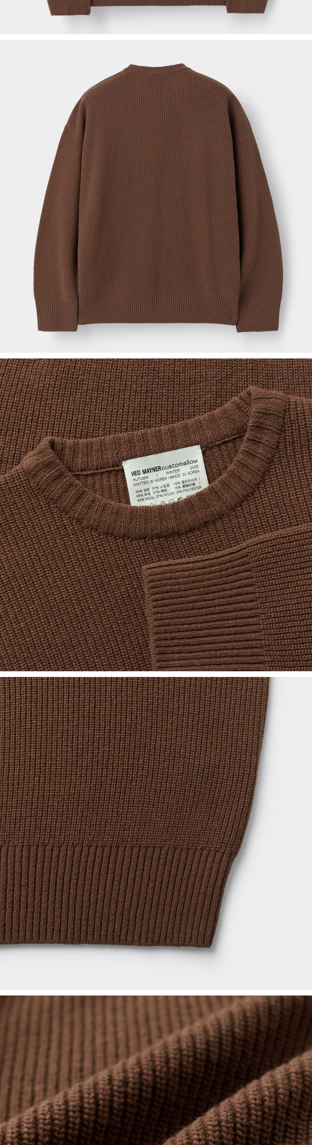 커스텀멜로우 헤드메이너 오버사이즈 핏 울 스웨터 브라운