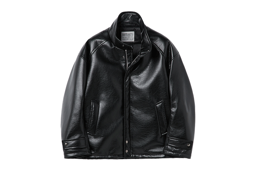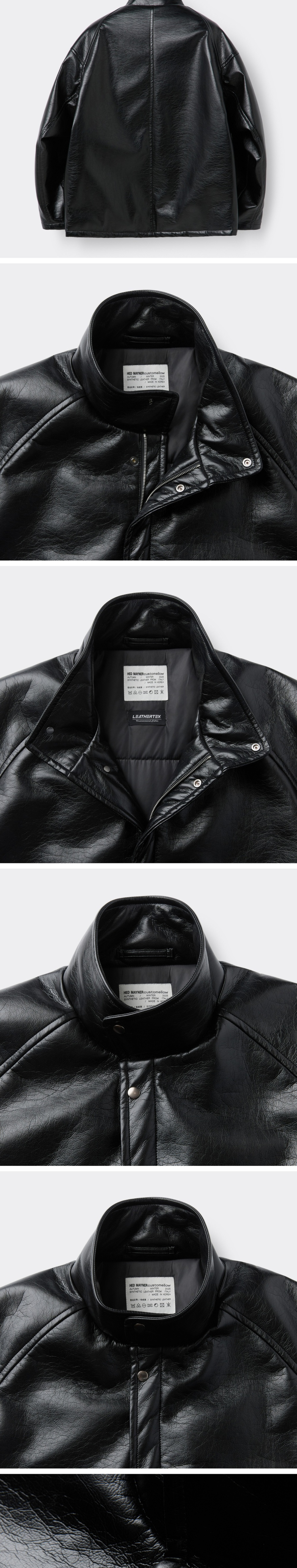 커스텀멜로우 헤드메이너 페이크 레더 패딩 파카 블랙