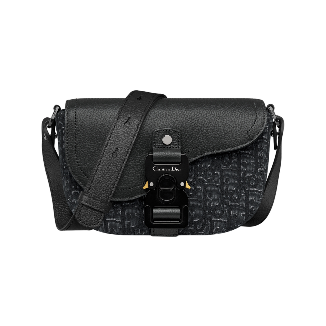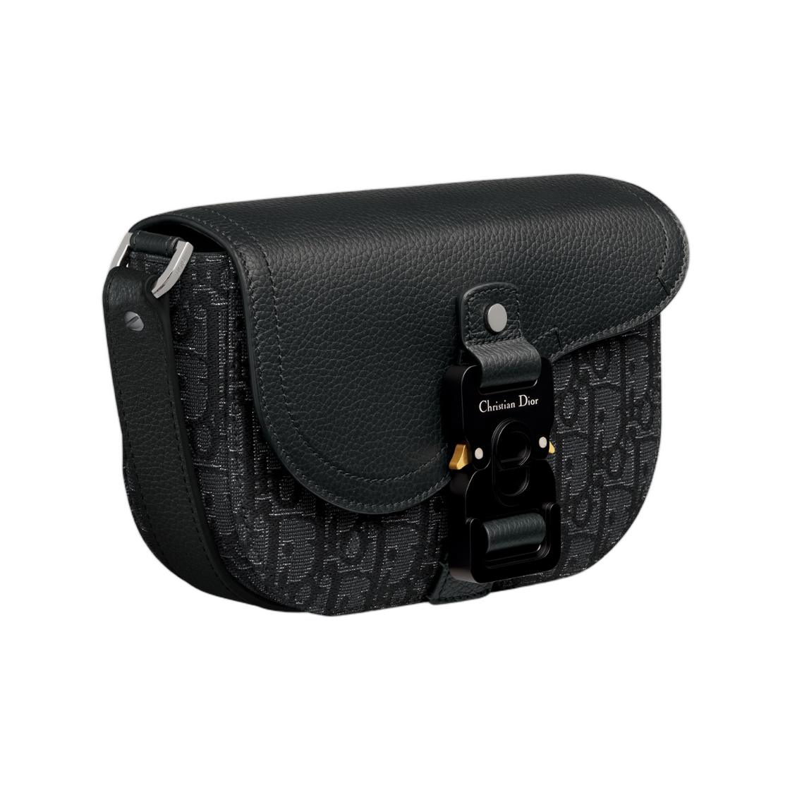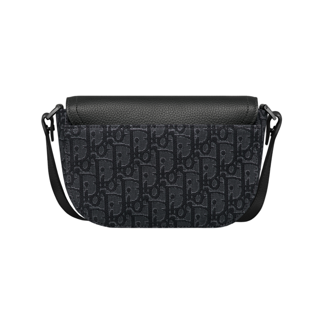 디올 새들 미니 플랩 스트랩 백 메탈릭 디올 오블리크 자카드 & 그레인드 카프스킨 실버 블랙