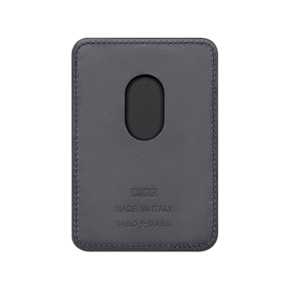디올 새들 마그네틱 카드 홀더 그레인드 카프스킨 & 메탈릭 디올 오블리크 자카드 마르퀘트리 블랙 실버