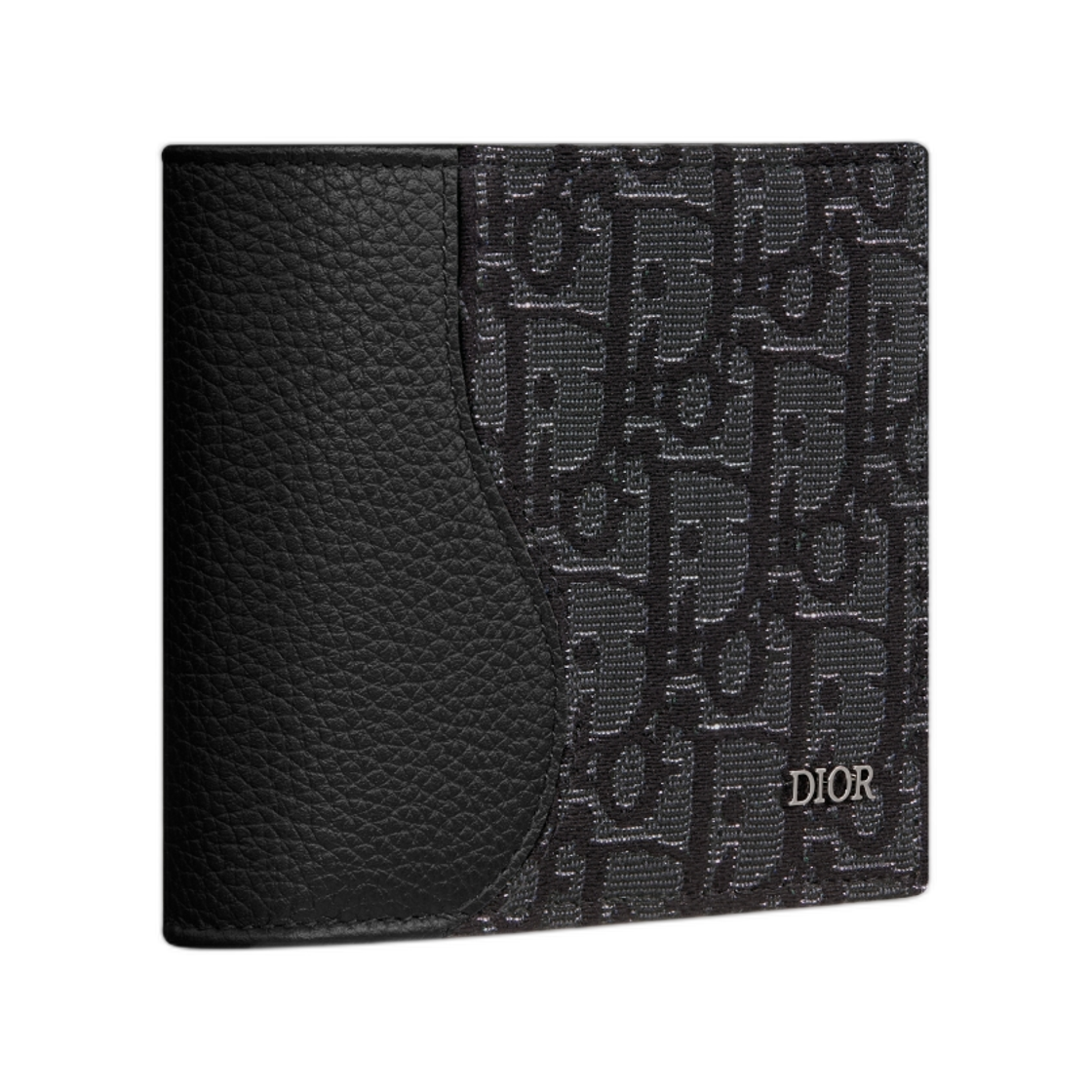 Dior Saddle Bi Fold Wallet Grained Calfskin & Metallic Dior Oblique Jacquard Marquetry Black Silver