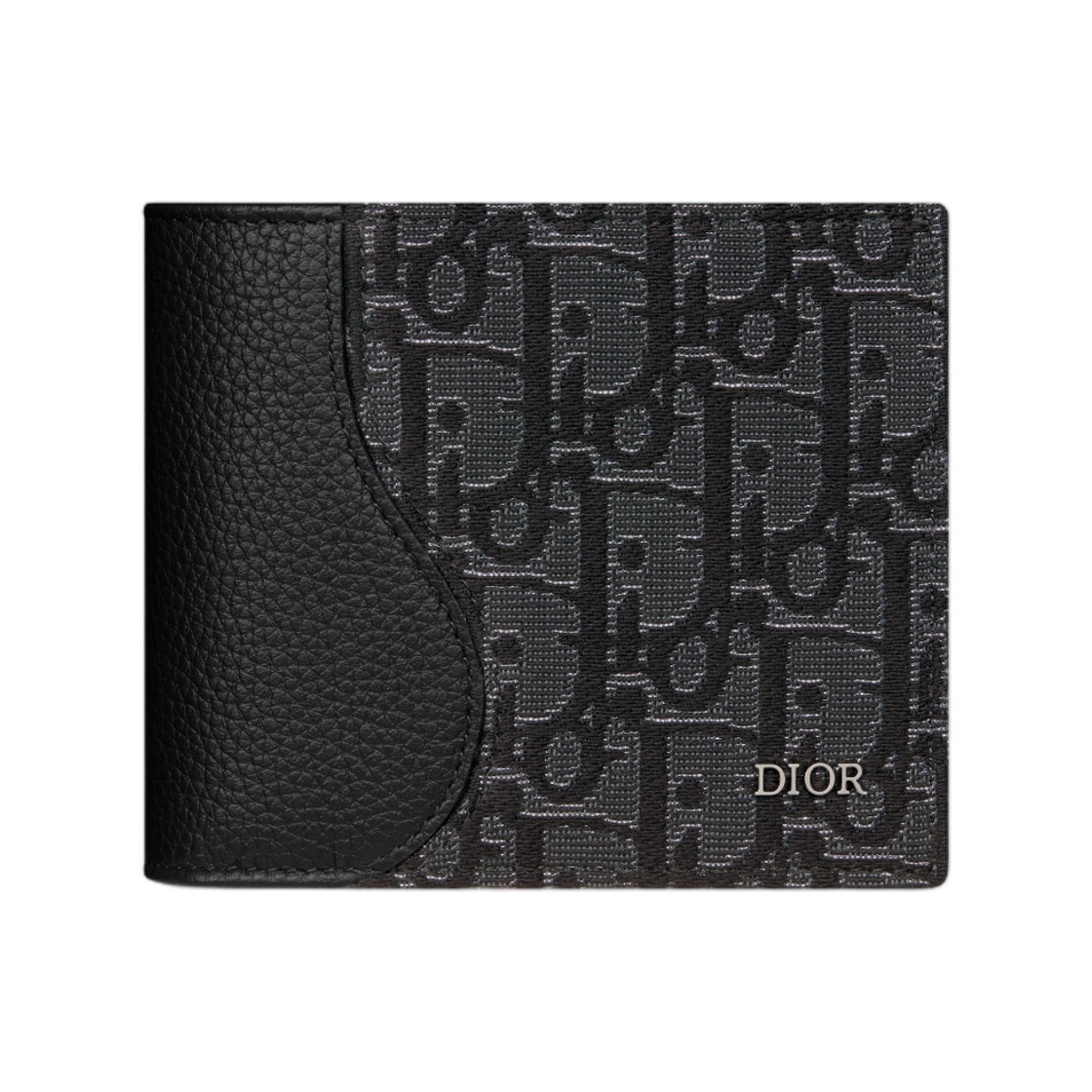 디올 새들 바이 폴드 월렛 그레인드 카프스킨 & 메탈릭 디올 오블리크 자카드 마르퀘트리 블랙 실버