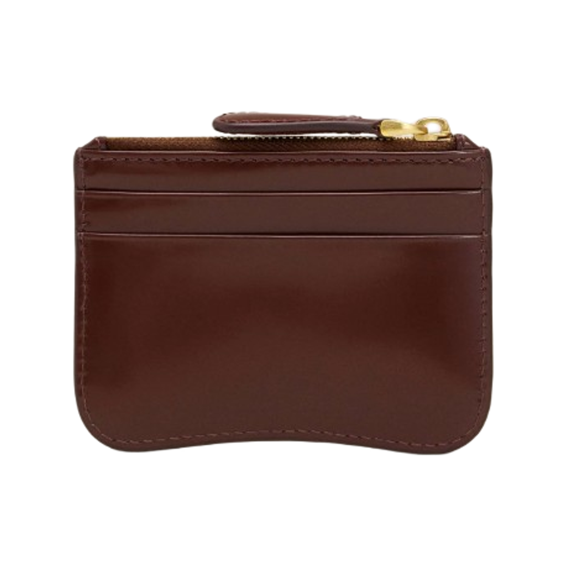 아미 파리 스몰 하트 로고 글레이즈드 레더 지퍼 카드 홀더 버건디 골드