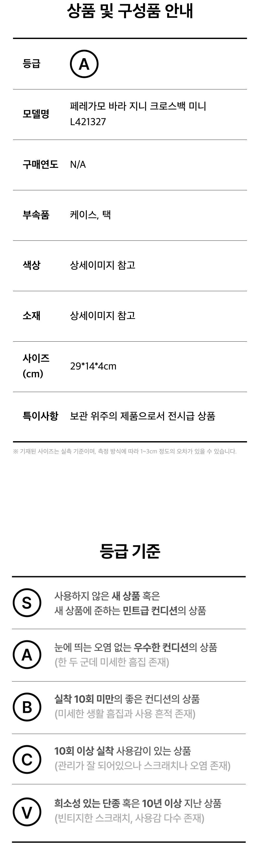살바토레 페라가모 바라 지니 크로스백 미니 L421327