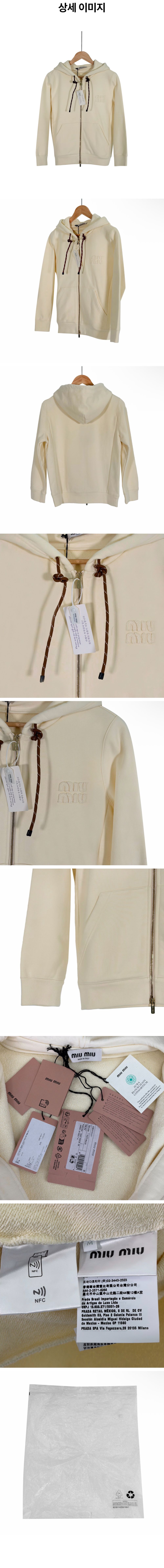 미우미우 여성 코튼 로고 플리스 지퍼 후드 집업 자켓 내츄럴 크림