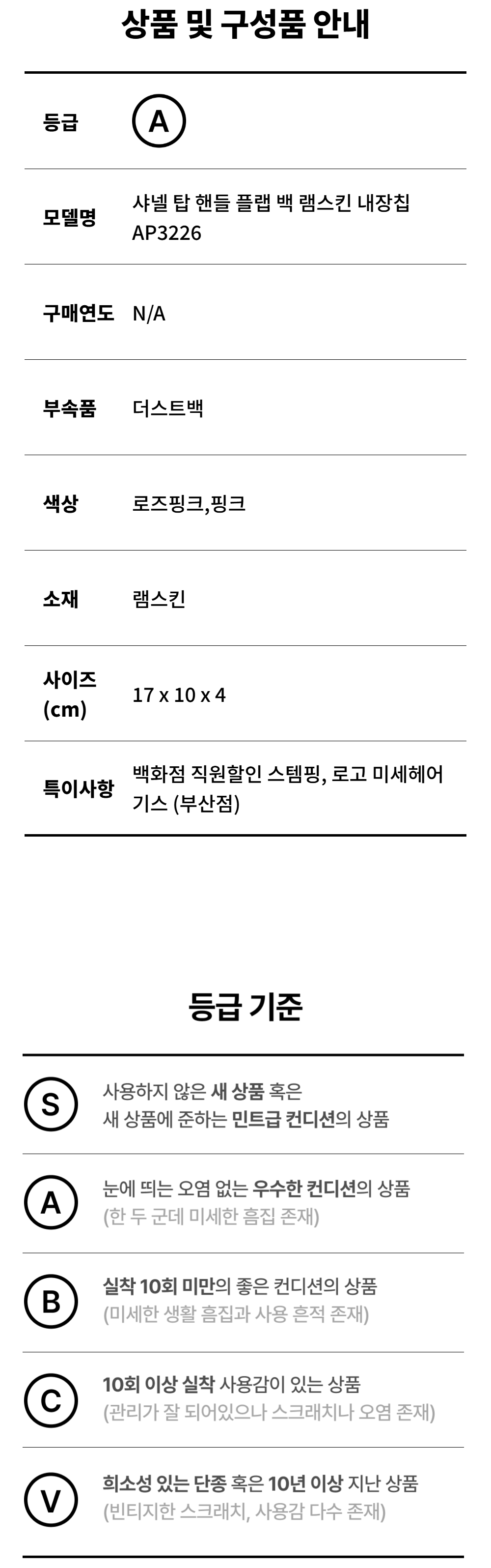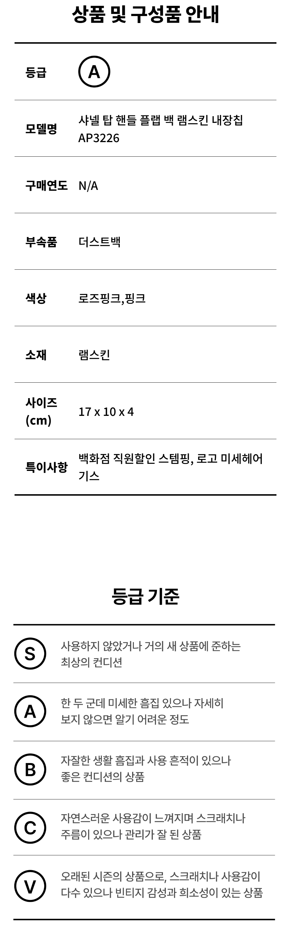 샤넬 탑 핸들 플랩 백 램스킨 내장칩 AP3226