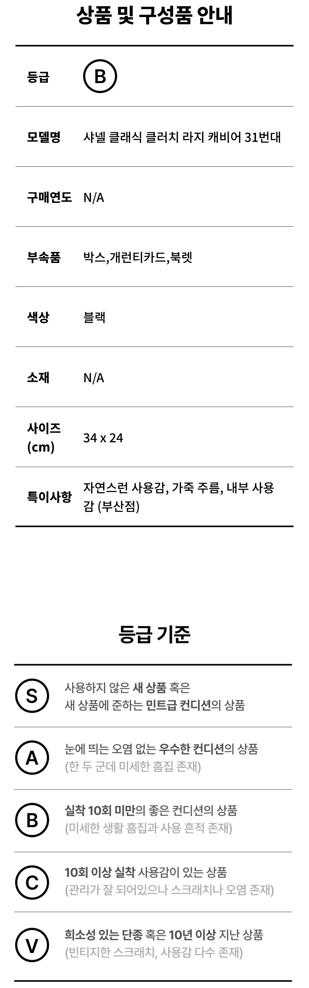샤넬 클래식 클러치 라지 캐비어 31번대