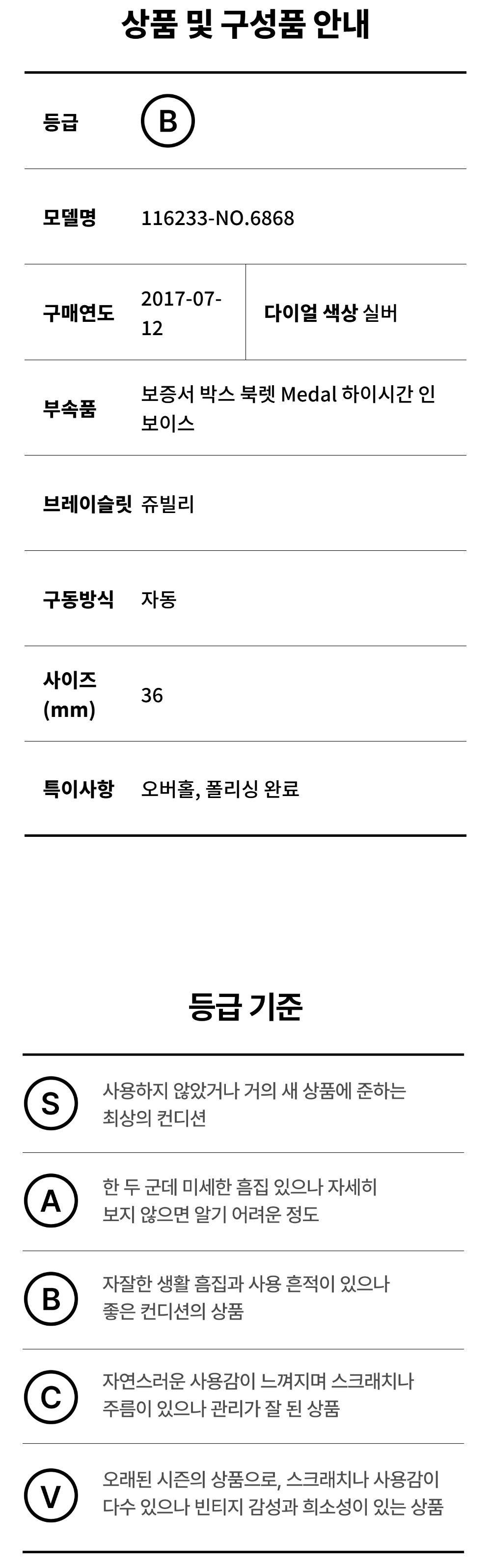 롤렉스 데이저스트 36-116233 실버 10P 쥬빌리 NO.6868