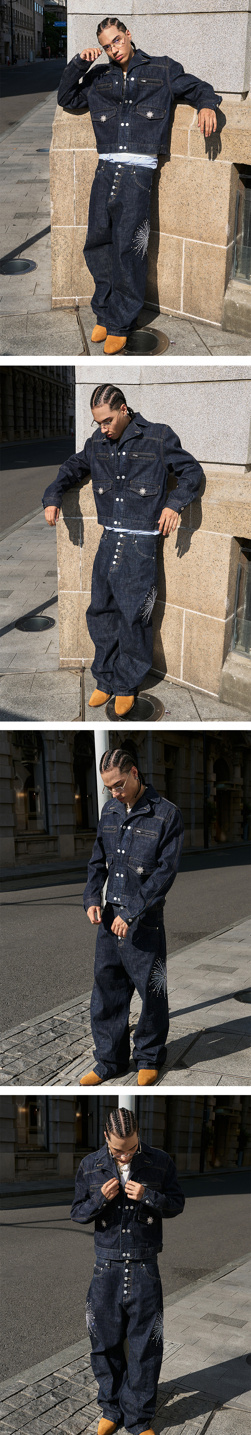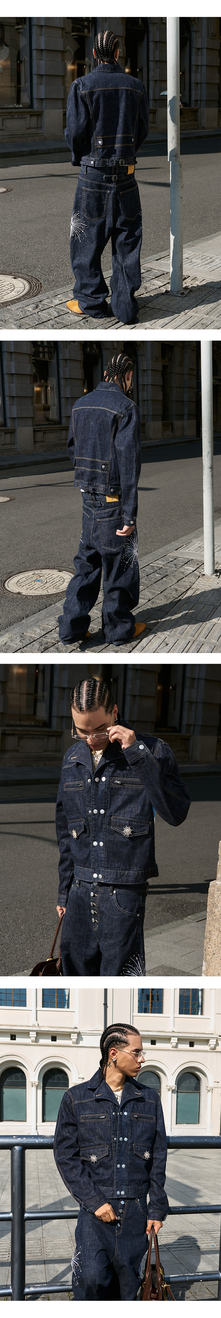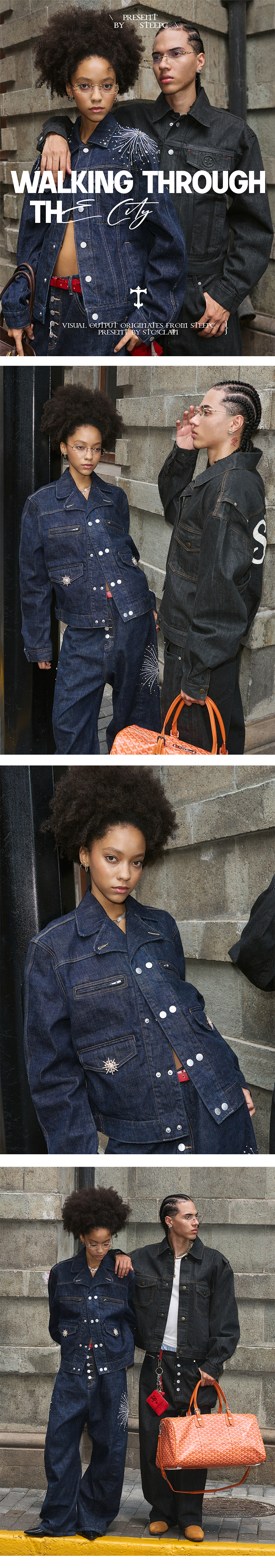 - SDV 데님 사용 - 레귤러 핏 더블 버튼 데님 자켓 코트 - 숏기장의 레귤러 핏 - 아메리칸 캐주얼 스타일에 적합한 무드
