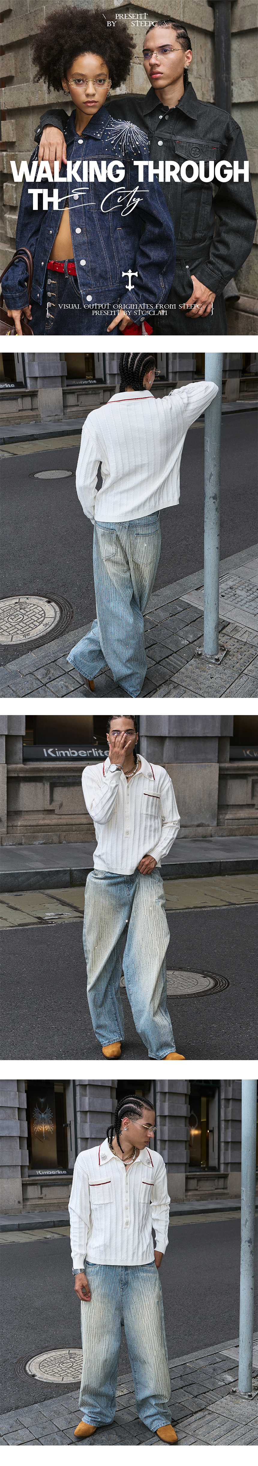 - 루즈한 배기핏 - 하드 워싱된 빈티지한 컬러감 - 60,000개에 가까운 핸드드립 핫드릴 공법 사용 - 수십 개의 고품질 큐빅 디테일