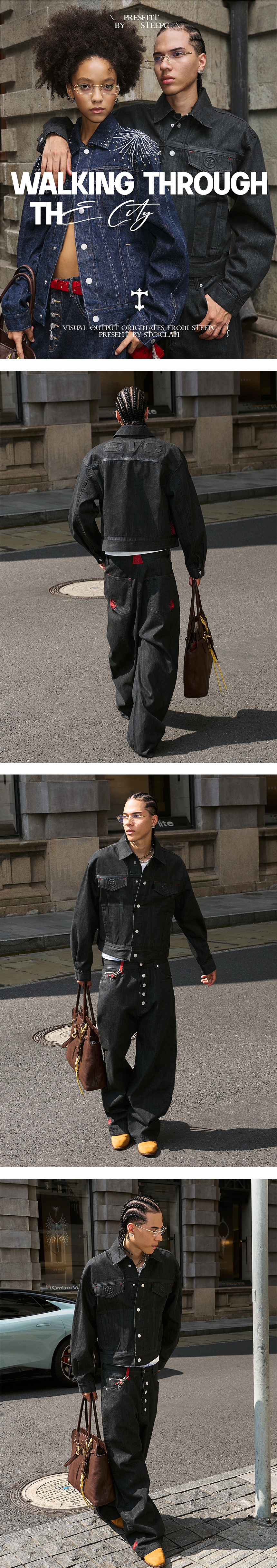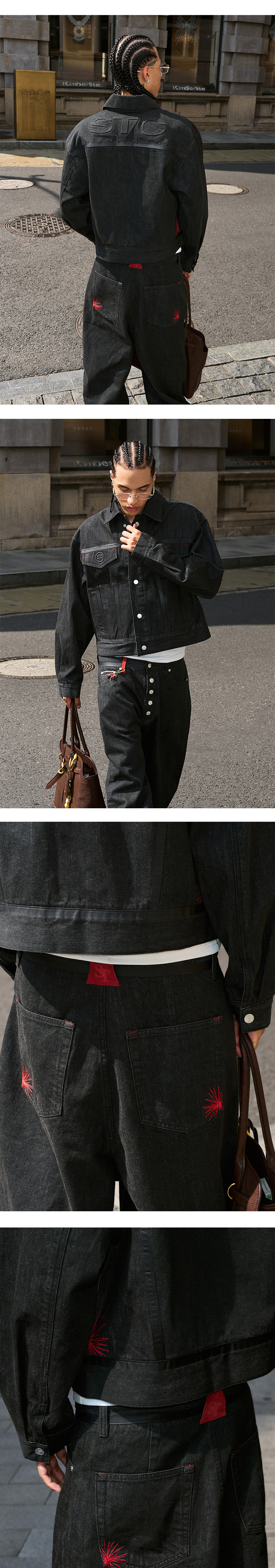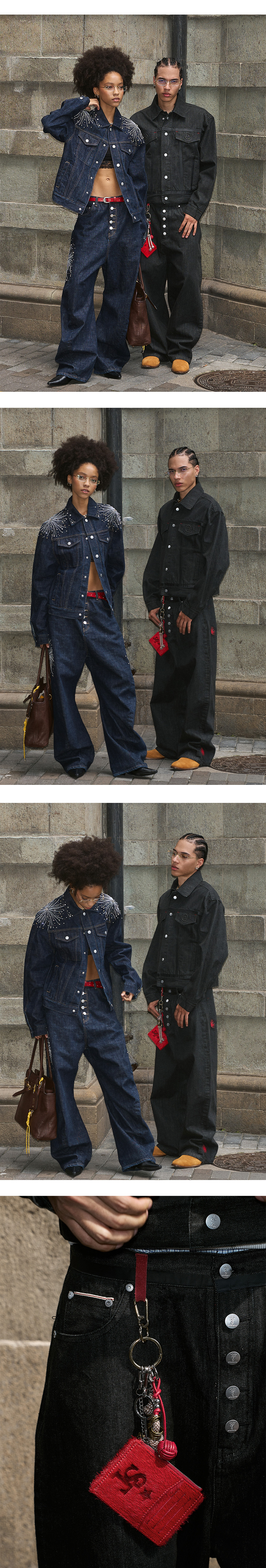 - SDV 셀비지 데님 사용 - SDV 지속가능한 데님 생산 - 5버튼 포인트 - 뒷 포켓 빨강 불꽃 스티치 디테일 - 뒷 중앙 빨강 로고 디테일