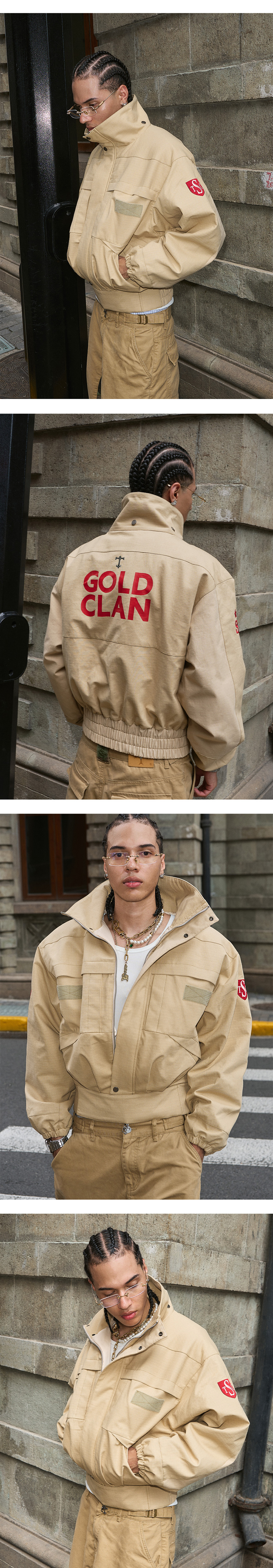 - 스탠드 칼라 패디드 워커 점퍼 - 두툼한 원단으로 겨울 착용 가능 - 밑단 탄탄한 시보리로 핏을 잡아줌 - 로고 자수 디테일 및 뒷면 골드클랜 레터링 포인트