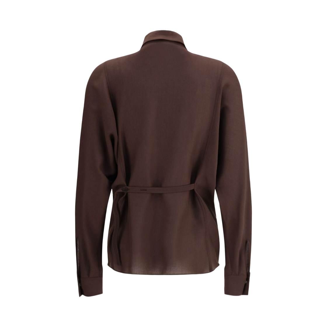 (W) Brunello Cucinelli Embellished Collar Shirt Brown