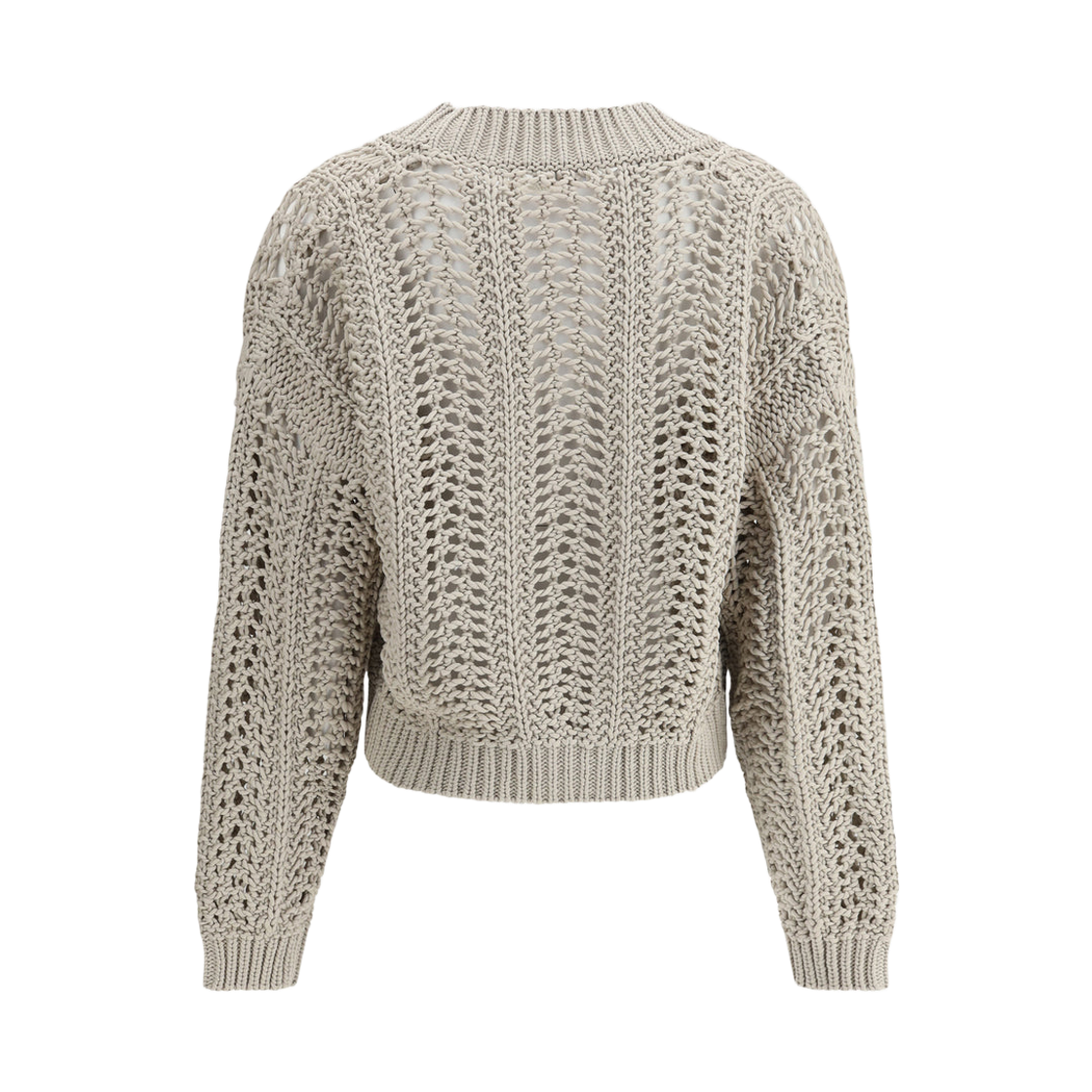(W) Brunello Cucinelli Cotton Ribbed Net Cardigan Beige