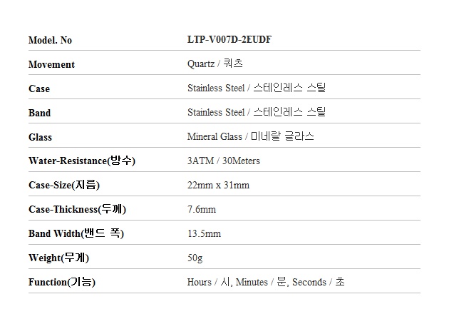 [15% 쿠폰] 카시오 LTP-V007D-2E