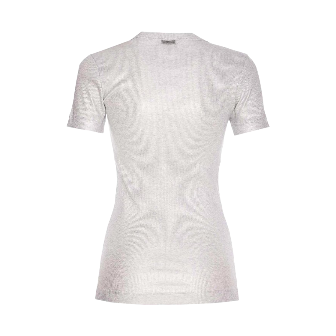 (W) Brunello Cucinelli Sparkling Stretch Cotton Ribbed Jersey T-Shirt with Shiny Tab Silver