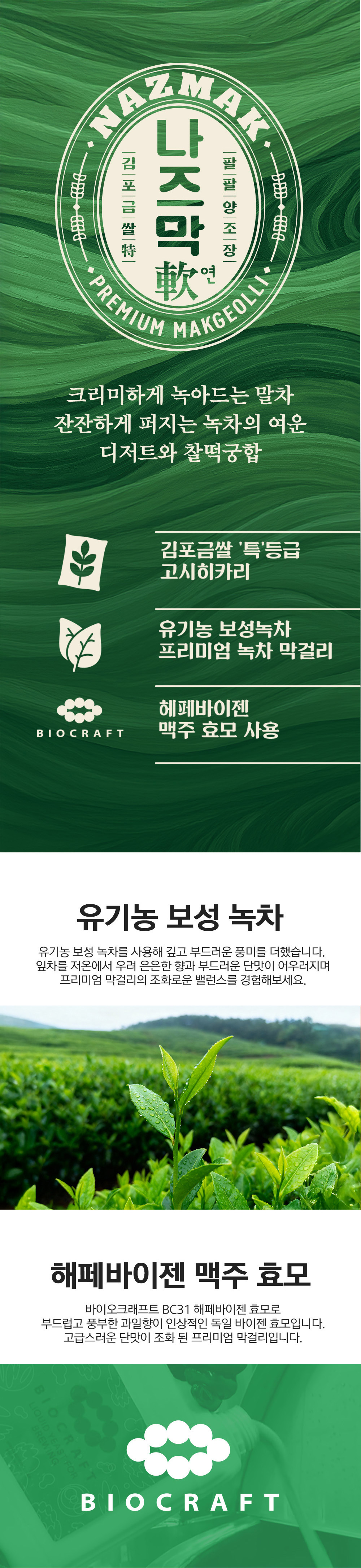 *12:00pm 이전 주문 시 당일출고 다음날 도착* 부드럽게 갈린 말차와 향긋한 녹차를 조화롭게 담아낸 섬세한 인퓨전 방식의 프리미엄 막걸리입니다. 헤페바이젠 맥주 효모로 완성된 부드러운 질감과 잔잔하게 퍼지는 녹차의 여운, 크리미하게 녹아드는 말차 풍미를 나즈막만의 감각적인 디자인과 함께 즐겨보세요.
