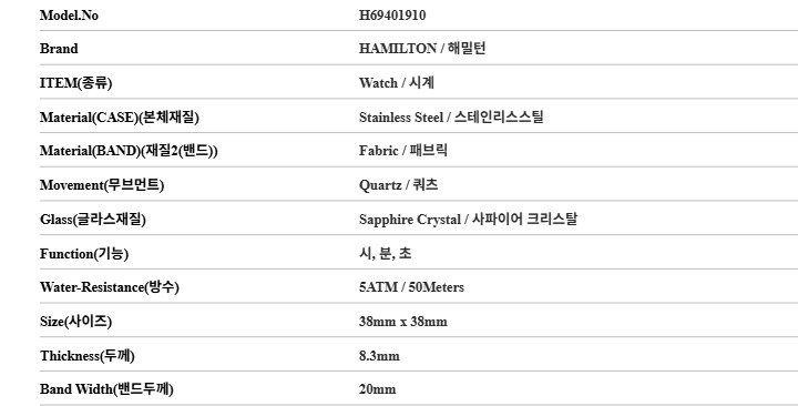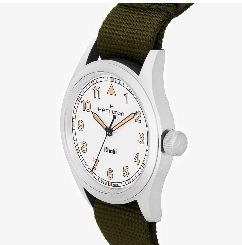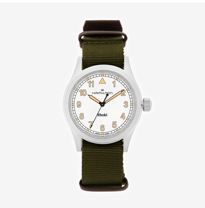 [15% 쿠폰] 해밀턴 카키 필드 쿼츠 38mm 스테인리스 스틸 화이트