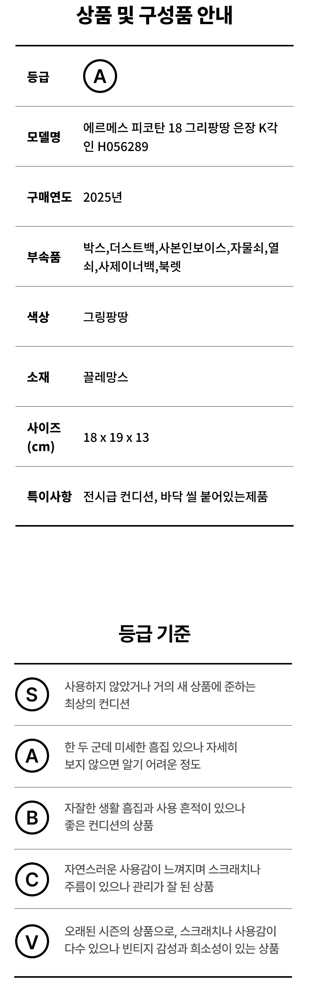 에르메스 피코탄 18 그리팡땅 은장 K각인 H056289