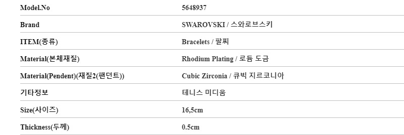 [13% 쿠폰] (W) 스와로브스키 매트릭스 테니스 브레이슬릿 화이트 로듐 플래팅 미디움